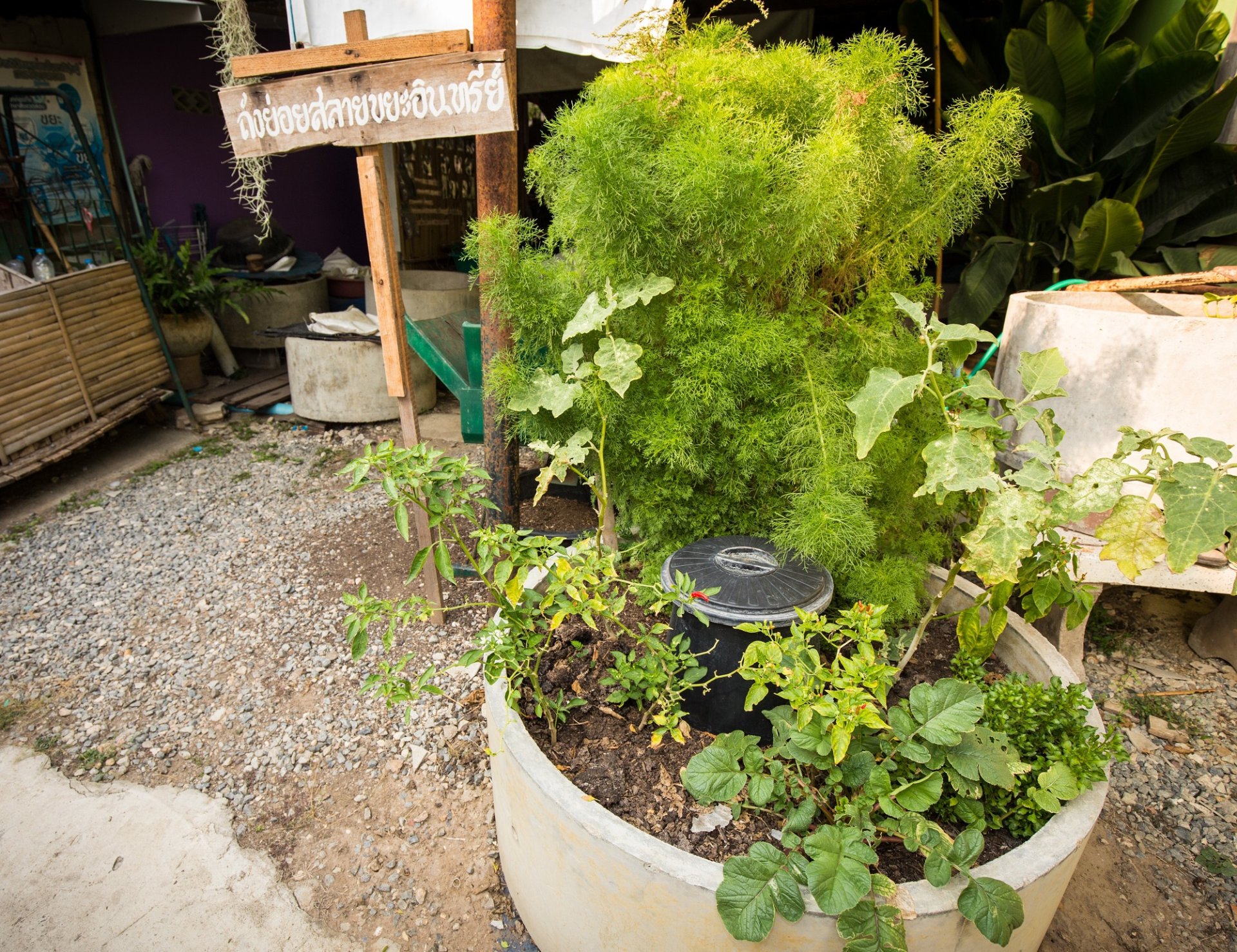 ด้านผู้ใหญ่สนั่น เตชะดี ผู้ใหญ่บ้านรางพลับ จ.ราชบุรี เล่าว่า จุดเริ่มต้นที่ทำให้ชุมชนลุกขึ้นมาจัดการขยะคือ นอกจากขยะจะสร้างปัญหาด้านสิ่งแวดล้อมแล้ว ยังก่อปัญหาการทะเลาะกันในชุ มชนด้วย จากความพยายามผลักขยะที่มีกลิ่นไปไว้หน้าบ้านคนอื่น แม้จะมีความพยายามให้แยกขยะ และทุกบ้านมีถังรองรับ จึงมองว่าถังขยะเป็นต้นเหตุที่ทำให้ชาวบ้านไม่เปลี่ยนพฤติกรรม ดังนั้นการจัดการขยะต้องทำตั้งแต่ต้ นทาง พยายามให้คนในชุมชนแยกขยะก่อนทิ้ง เพราะขยะมาจากมนุษย์ ต้นทางคือแต่ละบ้าน เมื่อมีถังอยู่พฤติกรรมชาวบ้านไม่เปลี่ยน ตอนแรกมีปัญหาเยอะต้องเด็ดขาดสั่งห้ามคืนถังให้ชาวบ้าน ต้องมีการปรับพฤติกรรมของชุมชน ผมใช้งบส่วนตัวซื้อถุงดำแจกทุกบ้านสำหรับขยะสองสัปดาห์ หลังจากนั้นต้องช่วยตัวเอง โดยชี้ให้เห็นว่าเราเป็นชุมชนด้ านเกษตรมีถุงปุ๋ยที่สามารถนำมาเป็นถุงคัดแยกขยะได้