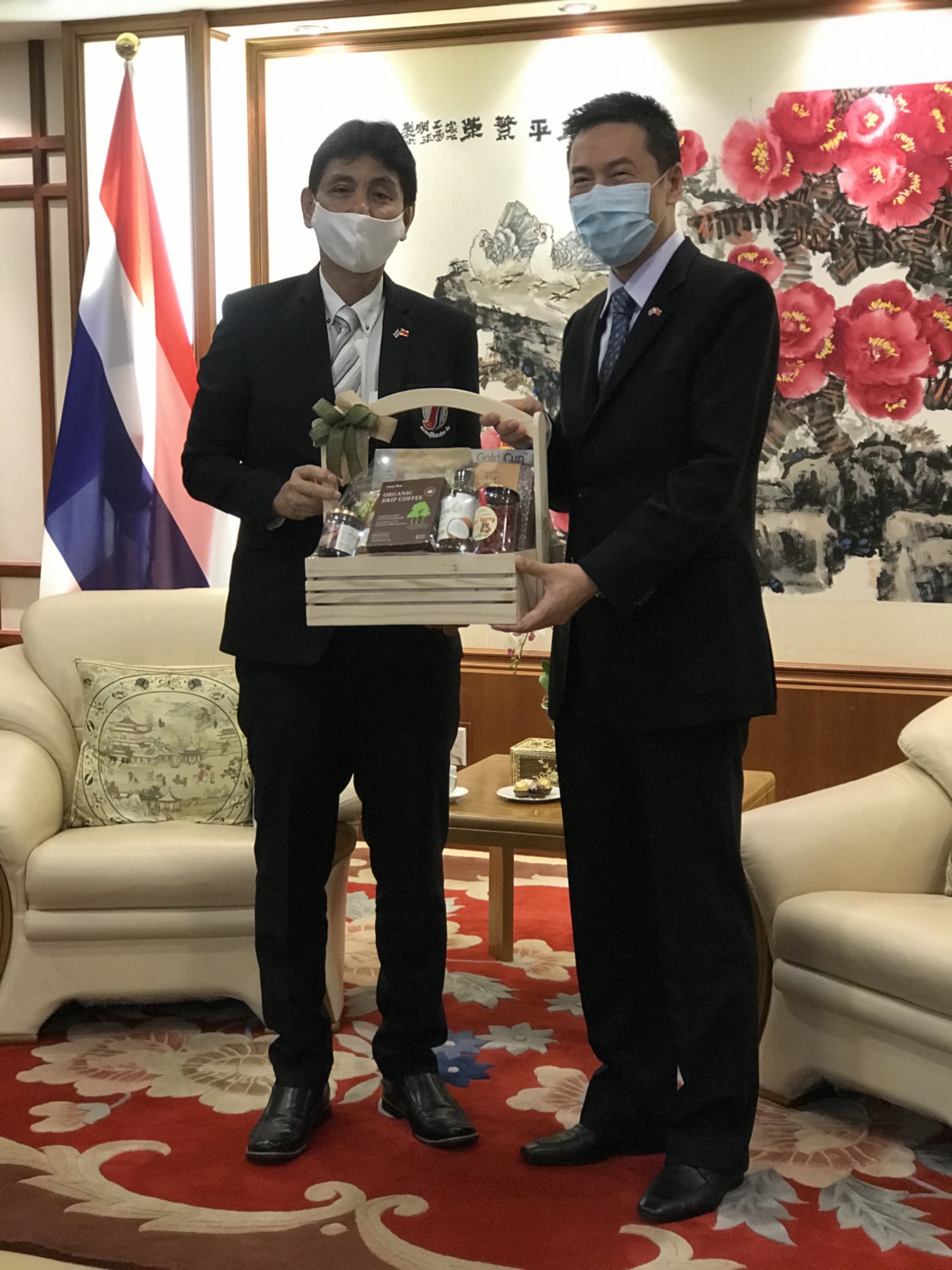 ที่สถานเอกอัครราชทูตสาธารณรัฐประชาชนจีนประจำประเทศไทย ถนนรัชดาภิเษก กรุงเทพฯ เมื่อวันที่ 13 ต.ค. คณะกรรมการสมาคมผู้สื่อข่าวไทย-จีน นำโดยนายภูวนารถ ณ สงขลา นายกสมาคมฯ เดินทางเข้าพบนายหยาง ซิน อุปทูตรักษาการแทนเอกอัครราชทูตสาธารณรัฐประชาชนจีนประจำประเทศไทย ที่สถานเอกอัครราชทูตสาธารณรัฐประชาชนจีนประจำประเทศไทย เพื่อแนะนำคณะกรรมการสมาคมฯชุดล่าสุด และหารือความร่วมมือต่าง ๆ ส่งเสริมสร้างความสัมพันธ์ไทย-จีนต่อไป.