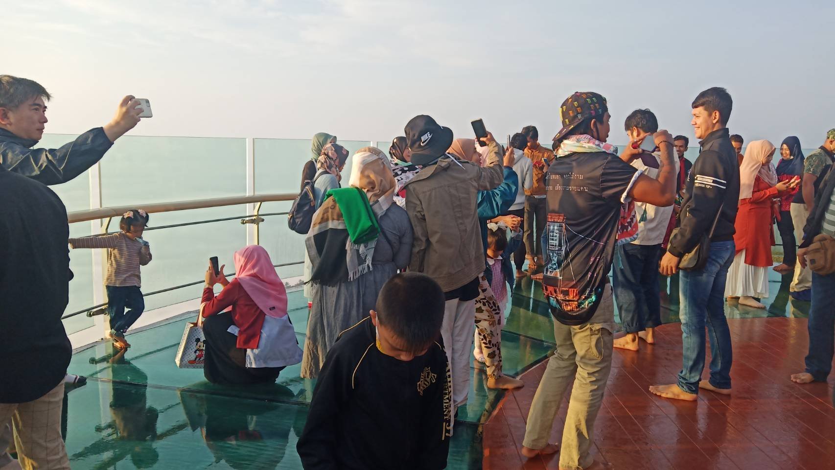 เมื่อวันที่ 18 ต.ค.ที่จุดชมสกายวอล์ก ทะเลหมอกอัยเยอร์เวง อ.เบตง จ.ยะลาในวันหยุดสุดสัปดาห์มีนักท่องเที่ยวทั้งคนในพื้นที่ และต่างพื้นที่เดินทางมาเฝ้ารอขึ้นชมสกายวอล์กอัยเยอร์เวงกันเป็นจำนวนมากตั้งแต่เช้ามืดจนรถติด นักท่องเที่ยวต่อแถวเข้าคิวรอขึ้นสกายวอล์กอัยเยอร์เวงยาวเหยียด สร้างบรรยากาศทางการท่องเที่ยวในอำเภอเบตง โดยเฉพาะในพื้นที่ตำบลอัยเยอร์เวงคึกคักเป็นอย่างยิ่ง โดยเมื่อขึ้นมายังจุดชมวิวทะเลหมอกนักท่องเที่ยวจะได้สัมผัสหมอกที่อยู่รอบ ๆ แถมเห็นวิวแบบพาโนรามา360 องศาอย่างสวยงาม ซึ่งจุดนี้สามารถมองจากบนสกายวอล์กที่ลอยอยู่เหนือแหล่งท่องเที่ยวสุดฮิตคือ “ทะเลหมอกอัยเยอร์เวง” ที่นอกจากได้สัมผัสทะเลหมอกรอบ ๆ ตัวได้ตลอดทั้งปีแล้วยังจะได้เห็นพระอาทิตย์ขึ้นยามเช้าตรู่ของวันใหม่ มีวิวทิวทัศน์ของผืนป่าฮาลา-บาลา ทะเลสาบเขื่อนบางลาง และยังมองเห็นไปไกลได้ถึงประเทศมาเลเซียเลยทีเดียว