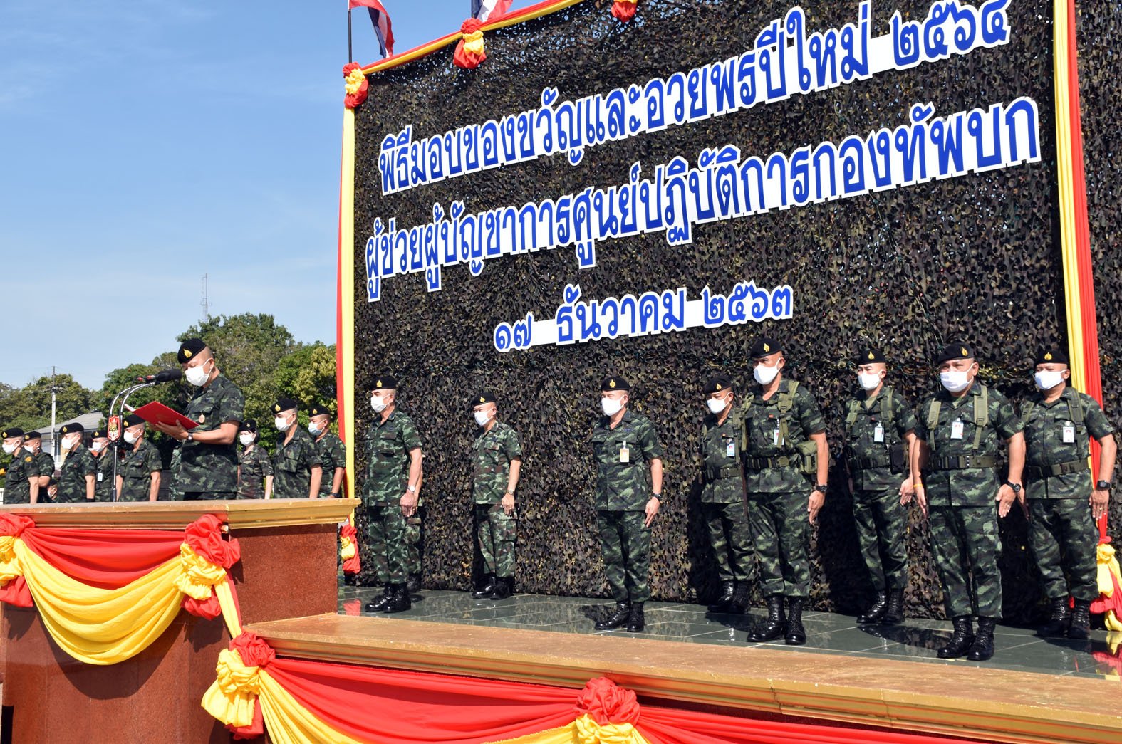 ผู้ช่วยผู้บัญชาการศูนย์ปฏิบัติการกองทัพบก มอบของขวัญให้กับหน่วยขึ้นตรง และหน่วยควบคุมทางยุทธการของกองกำลังสุรสีห์และอ่านสารน์อำนวยพรปีใหม่ของผู้บัญชาการศูนย์ปฏิบัติการกองทัพบก