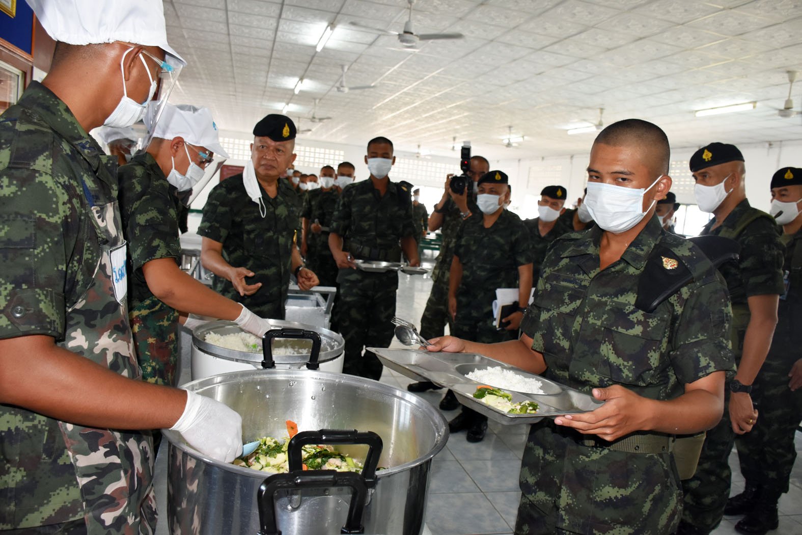 หลังเสร็จคณะเดินทางไปตรวจเยี่ยมการประกอบอาหารกลางวันเลี้ยงทหาร พร้อมรับประทานอาหารร่วมกับทหาร ที่โรงเลี้ยงอาหาร ร.19 พัน 1 (ค่ายสุรสีห์) ต.ลาดหญ้า อ.เมือง จ.กาญจนบุรี.