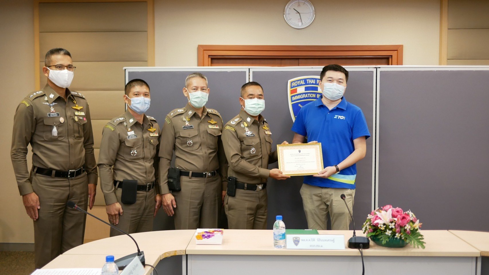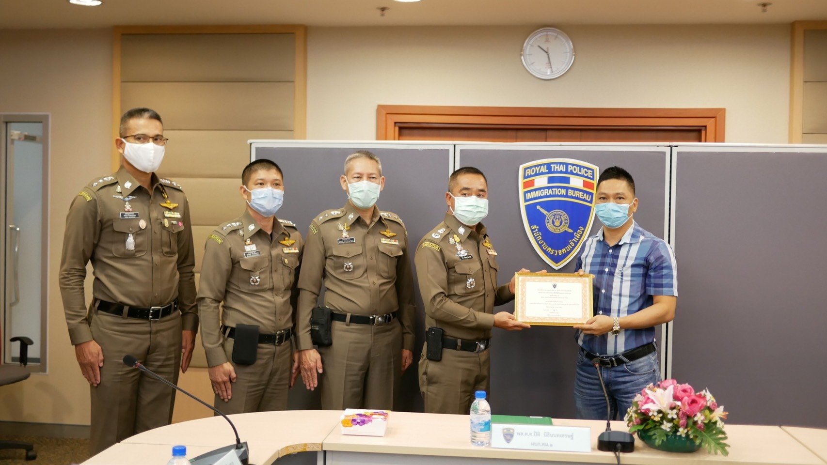 น้ำใจไทย...หน่วยงานภาคเอกชนร่วมรับมอบสิ่งของให้กับกองบังคับการตรวจคนเข้าเมือง 1 สนับสนุนภารกิจการป้องกันการแพร่ระบาดโควิด 19