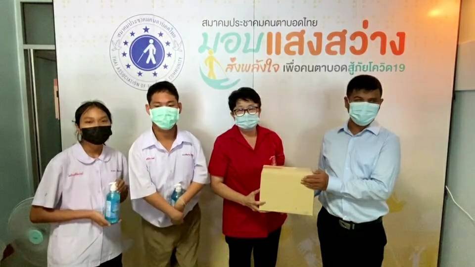 นายกสมาคมประชาคมคนตาบอดไทย มอบข้าวสารและเครื่องอุปโภคให้ตัวแทนจังหวัดต่าง ๆ นำไปเยียวยา-บรรเทาความเดือดร้อนของคนพิการทางการเห็นที่ได้รับผลกระทบจากโรคระบาดโควิด-19