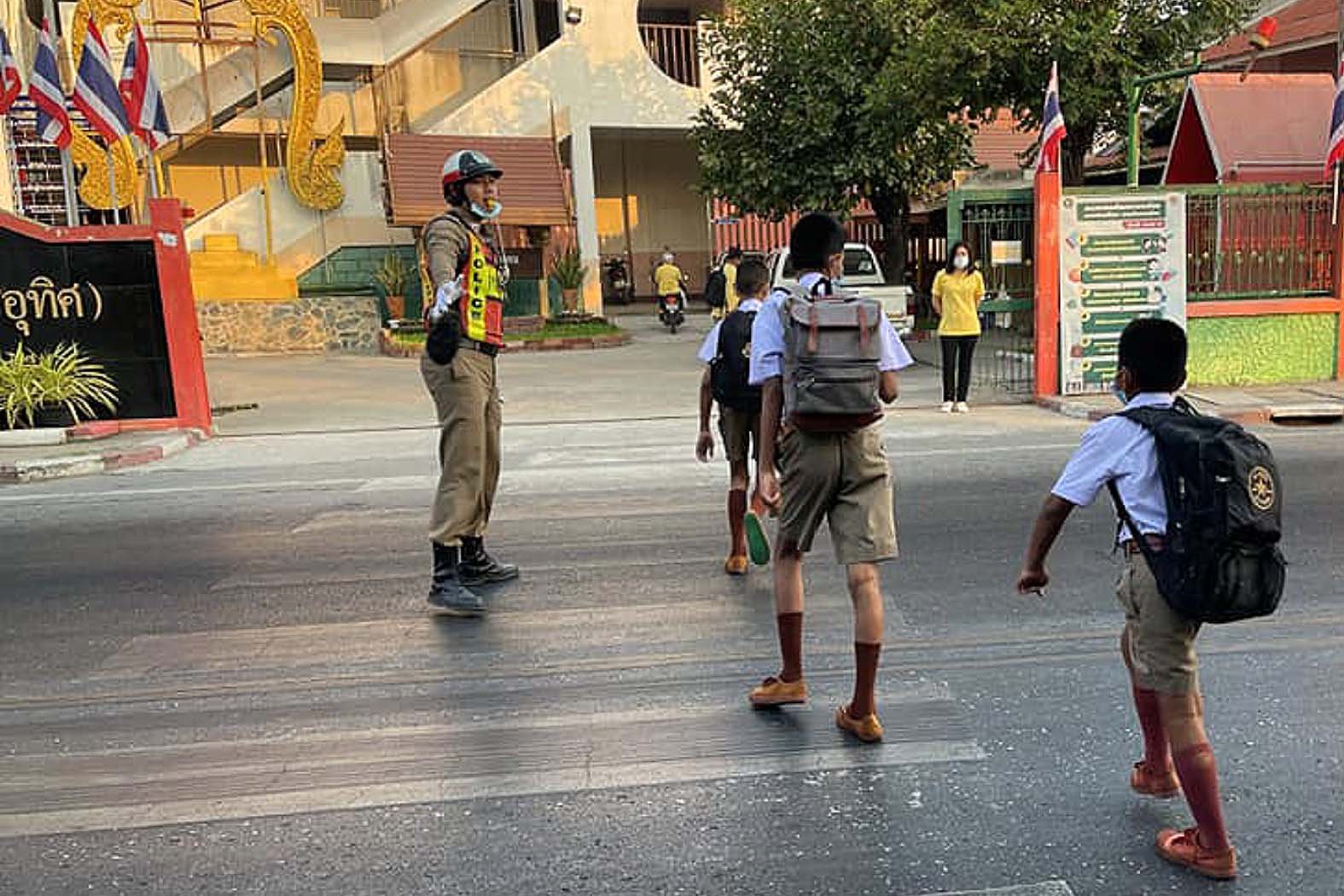 โรงพักสองพี่น้อง เมืองสุพรรณฯจัดกิจกรรมตำรวจสองพี่น้องใจดี พานักเรียนข้ามถนนเข้าโรงเรียน"Police School Care"ลดปัญหาการเกิดอุบัติเหตุ