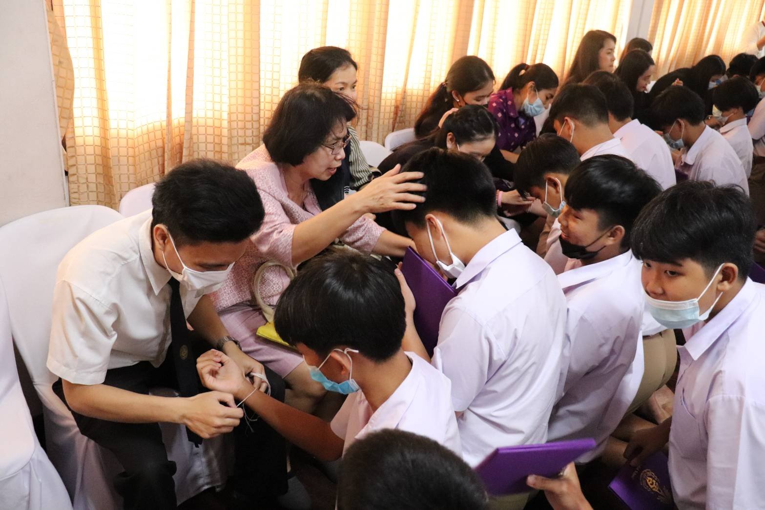 นอกจากนี้ช่วงบ่ายยัง ดร.นฤเทพ ยังได้ทำพิธีมอบประกาศนียบัตร จากนั้นคณะอาจารย์ร่วมกันทำพิธีบายศรีสู่ขวัญผูกข้อมือให้กับนักเรียนที่สำเร็จการศึกษา ที่ห้องโสตทัศนศึกษา แล้วเดินลงมาร่วมบูมร้องเพลง “มาร์ช ลูก ส.” เสร็จแล้วเดินลอดซุ้มดอกไม้หน้าโรงเรียน ส่งต่อให้สมาคมนักเรียนเก่าวัดสระเกศ ท่ามกลางบรรยากาศซาบซึ้งใจ ทั้งกลุ่มนักเรียนที่สำเร็จการศึกษา บรรดาครูอาจารย์ และศิษย์เก่าที่ได้เข้าร่วมกิจกรรม.
