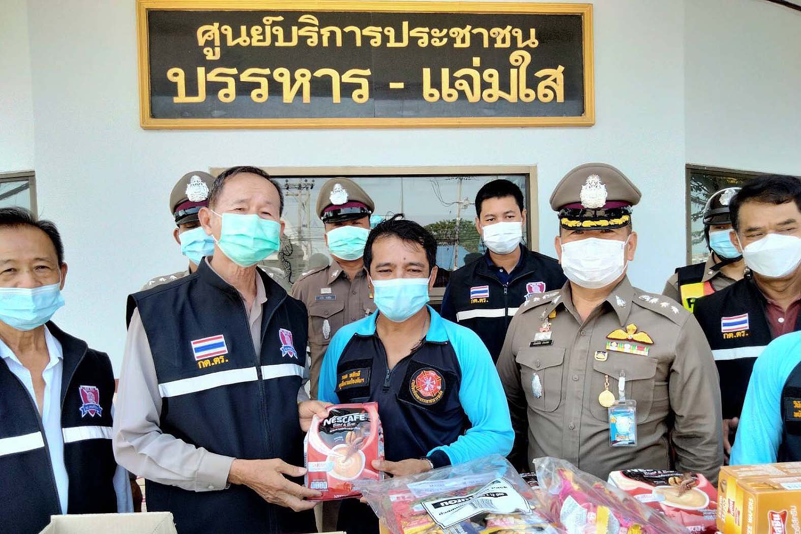 ประธาน กต.ตร.สภ.สองพี่น้อง ร่วมกับคณะกรรมการฯ นำข้าวสารอาหารแห้ง น้ำดื่มมอบให้กับเจ้าหน้าที่ตำรวจ ศูนย์บริการประชาชนช่วง 7 วันอันตราย