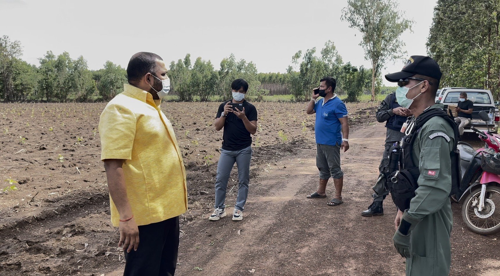 วันที่ 28 เม.ย.เวลา 12.30 น. อำเภอเมืองสระแก้ว ได้รับแจ้งจากผู้ใหญ่บ้านหมู่ที่ 8 ต.สระขวัญ อ.เมืองสระแก้วว่า พบวัตถุต้องสงสัยคล้ายระเบิด ที่ไร่ยูคาลิปตัสในพื้นที่ หมู่ 8 ต.สระขวัญ จากนั้นนายราเยส ราย (เจ้าพนักงานปกครองชำนาญการพิเศษ) รักษาราชการแทนนายอำเภอเมืองสระแก้ว พร้อมด้วยนายบุรินทร์ ล่วงเขต ปลัดอำเภอ (เจ้าพนักงานปกครองปฏิบัติการ) ฝ่ายความมั่นคง นำกำลังเจ้าหน้าที่ฝ่ายความมั่นคง ชุดปฏิบัติการพิเศษฝ่ายปกครองอำเภอเมืองสระแก้ว สมาชิกกองอาสารักษาดินแดนอำเภอเมืองสระแก้วที่ 2 เจ้าหน้าที่ตำรวจ ผู้ใหญ่บ้านในพื้นที่ หมู่ 8 ลงพื้นที่ตรวจสอบ