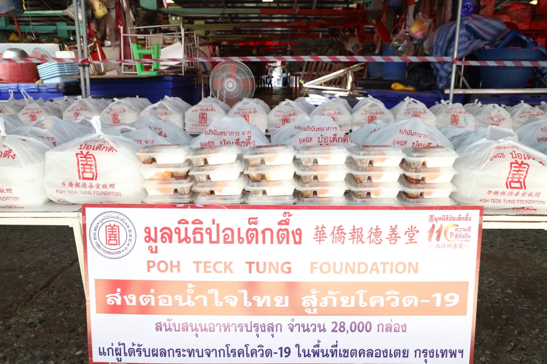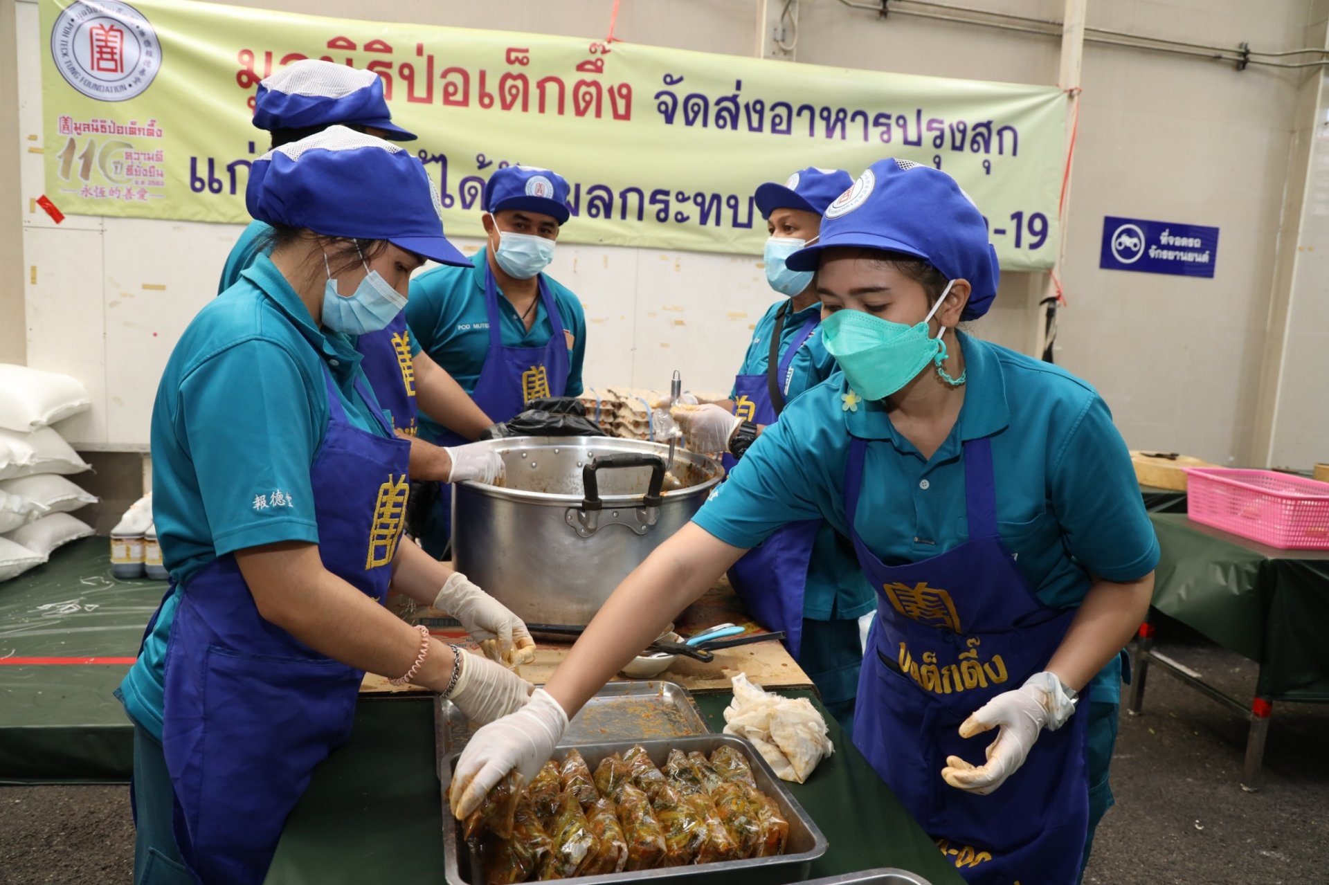มูลนิธิป่อเต็กตึ๊ง ส่งต่อธารน้ำใจ จัดตั้งโรงครัวประกอบอาหารปรุงสุกบรรจุกล่องช่วยเหลือพี่น้องประชาชนที่ได้รับผลกระทบจากโควิด-19 ในพื้นที่เขตคลองเตย