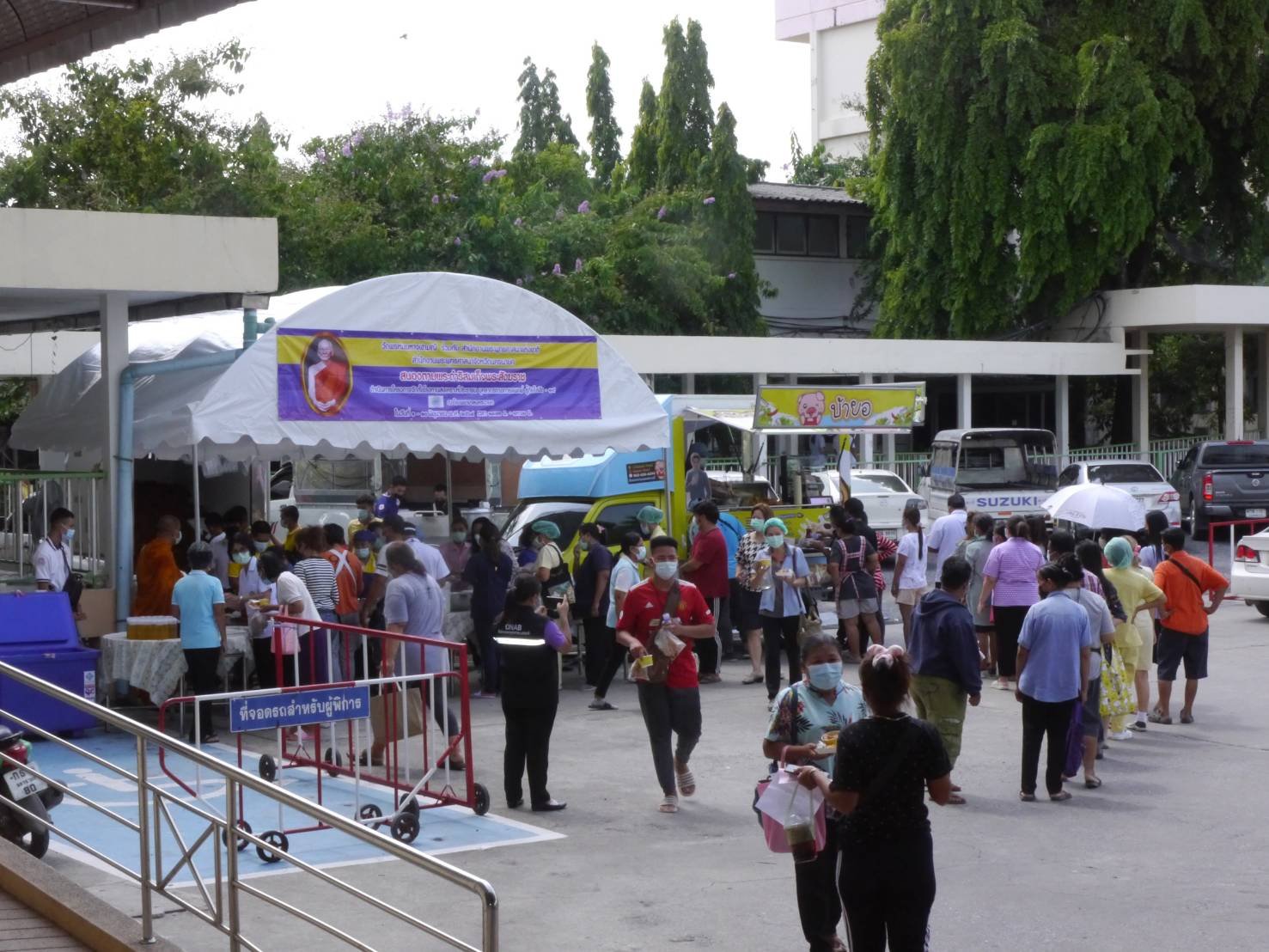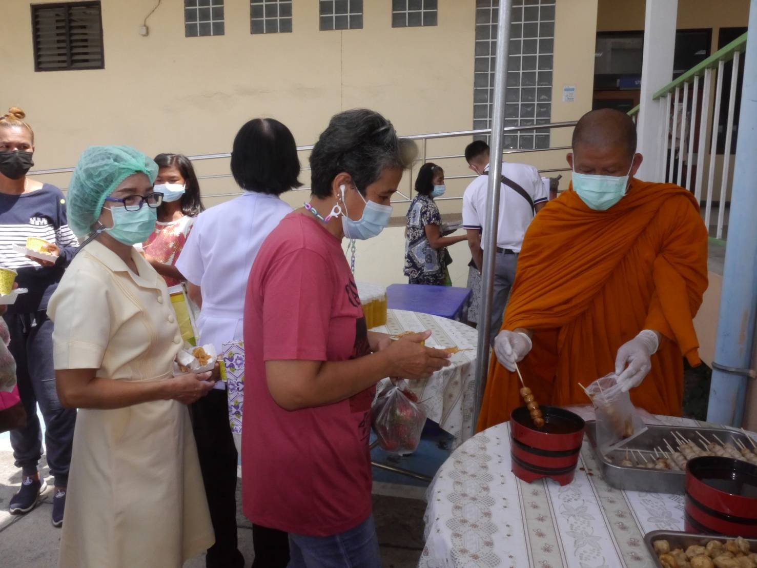 วันก่อน บริเวณหน้าอาคารผู้ป่วยนอก รพ.นครนายก พระครูโสภณพรหมรังษี เจ้าคณะตำบลท่าทราย เจ้าอาวาสวัดพรหมมหาจุฬามณีพรหมรังษี(วัดชวดบัว)ต.ดอนยอ อ.เมืองนครนายก ได้เปิดโรงทานขึ้นเพื่อเลี้ยงอาหารให้แก่บุคลากรแพทย์ รพ.นครนายก และญาติผู้ป่วยโดยได้เปิดโรงทานแบบบุพเฟ่จัดอาหารประเภทแกงเขียวหวาน,ไข่พะโล้,ลูกชิ้นระเบิดทอด,เงาะจำนวน 1 ตัน,น้ำกระเจี๊ยบ,น้ำลำไย,น้ำเก๊กฮวย