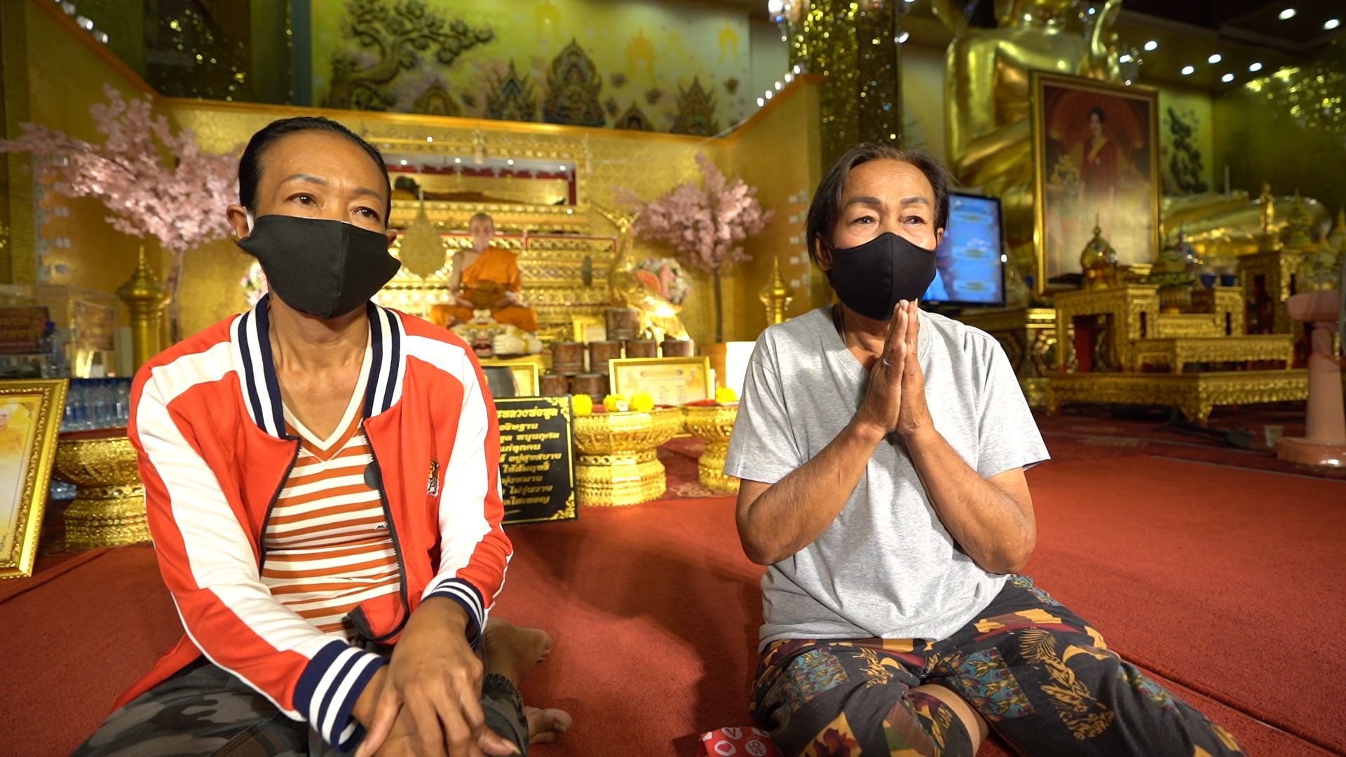 ต่อมานางธนพร เกิดแป๋ หรือป้าต๋อย อายุ 64 ปี หญิงชราคนดังกล่าว และนางจันทร์ฉาย พราหมนัส อายุ 46 ปี บุตรสาวคนโตได้เข้ามากราบและพบกับหลวงพี่น้ำฝนและลูกศิษย์ ที่มาร่วมงานโดยหลวงพี่น้ำฝนได้อธิบายและชี้แจงว่าจะช่วยเหลือดูแลในเรื่องหนี้สินทั้งหมด และจะช่วยหางานให้กับครอบครัวนี้ ซึ่งทำให้แม่ลูกที่ได้มาพบต่างน้ำตาคลอด้วยความตื้นตันใจ จากนั้นนางธนพร หรือป้าต๋อย และบุตรสาวได้เข้ากราบสังขารของหลวงพ่อพูล เกจิดังอดีตเจ้าอาวาสผู้ล่วงลับ ซึ่งตั้งอยู่ในวิหารพระพุทธเมตตาประทานพร เพื่อระลึกถึงบุญบารมีของหลวงพ่อ จนทำให้ได้รับการช่วยเหลือในครั้งนี้