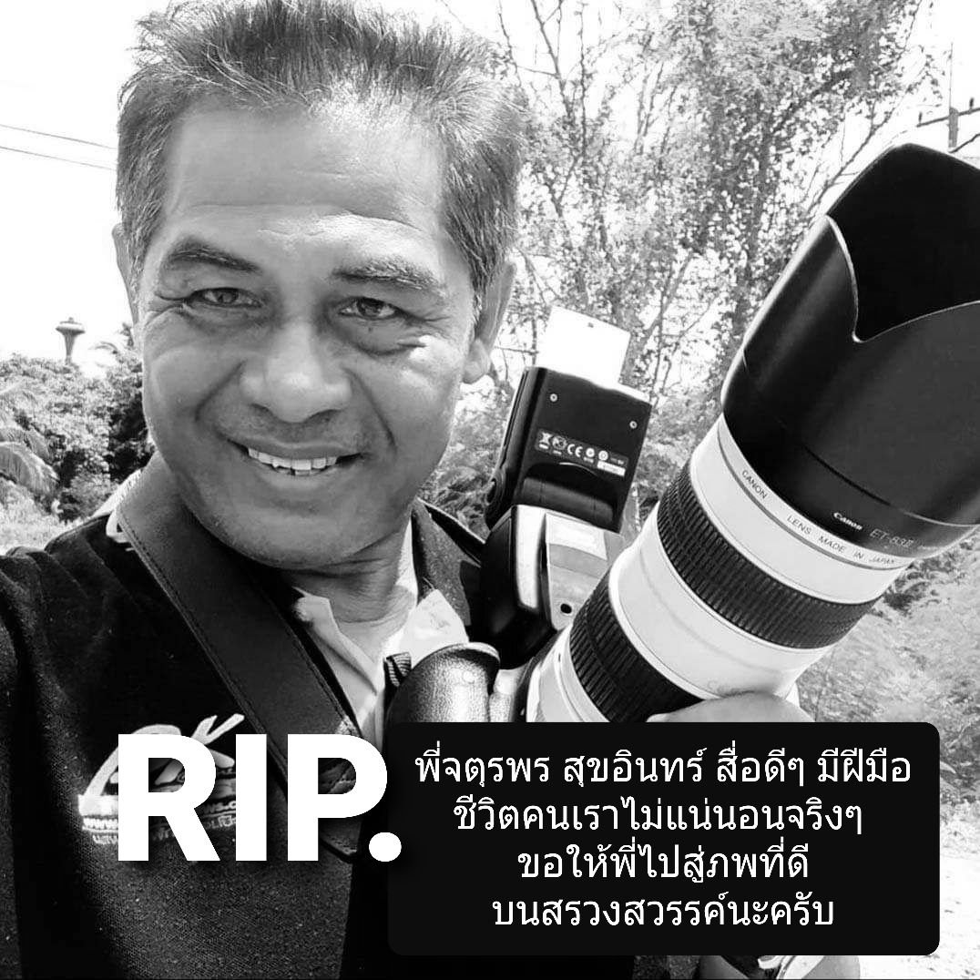 วันที่ 17 ก.ค."เหยี่ยวขาว"ขอแสดงความเสียใจกับการจากไปของผู้สื่อข่าวอาวุโสจังหวัดกาญจนบุรี คุณจตุรพร สุขอินทร์ อดีตผู้สื่อข่าวนสพ.เดลินิวส์ ที่ประสบอุบัติเหตุทางรถยนต์รถตกคลอง เหตุบริเวณหลังป้อมปากเขว้า อ.พนมทวน จ.กาญจนบุรี ช่วงเวลา 20.30 น.วันที่ 16 ก.ค.ที่ผ่านมา การสูญเสียครั้งนี้สร้างความโศกเศร้าให้กับญาติพี่น้อง และเพื่อนฝูงในวงการสื่อฯเป็นอย่างมาก เนื่องจากคุณจตุพรถือเป็นสื่อฯมืออาชีพ สร้างผลงานนำเสนอข่าวให้กับท้องถิ่นมาแล้วมากมาย