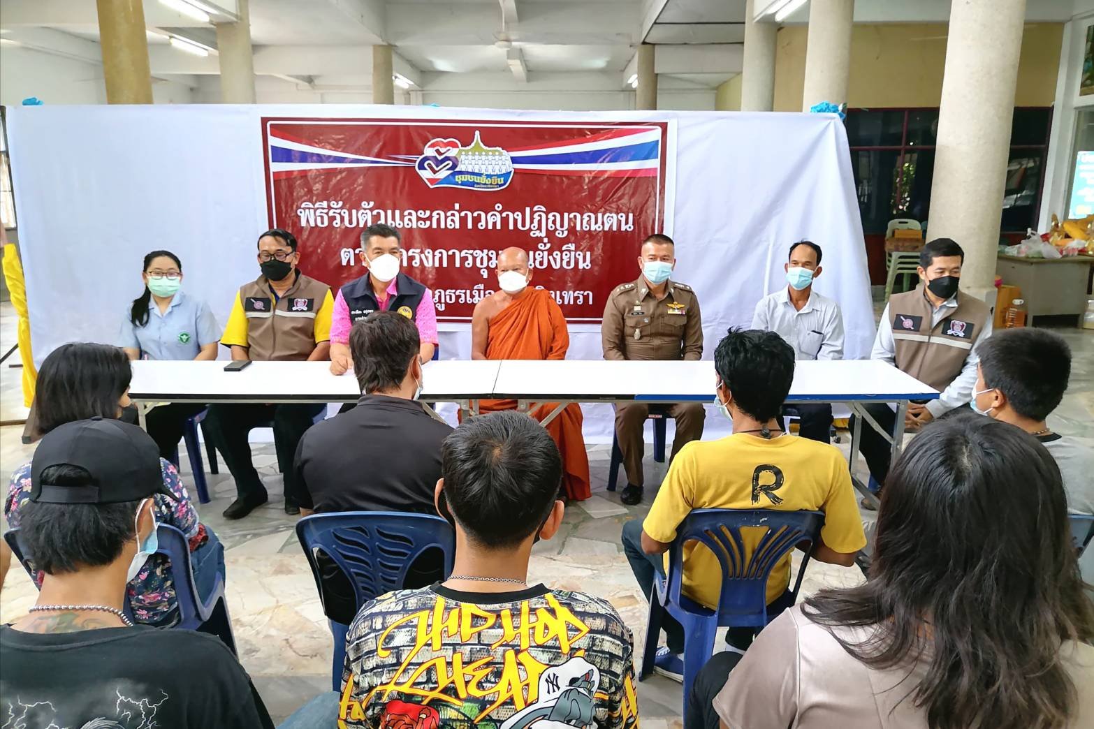 -ปฏิญาณตน... พ.ต.อ.ณัฐจักร จันลา ผกก.สภ.เมืองฉะเชิงเทรา จัดกิจกรรมพิธีรับตัว และกล่าวคำปฏิญาณตนของเยาวชนบ้านคู้อีกบ ตามโครงการ 'ชุมชนยั่งยืนเพื่อแก้ปัญหายาเสพติดแบบครบวงจร ตามยุทธศาสตร์ชาติ' โดยมีนายประเทือง อยู่เกษม นอภ.เมืองฉะเชิงเทรา เป็นประธาน พระครูรัตนพรหมคุณ เจ้าอาวาสวัดบางแก้ว นำกล่าวคำปฏิญาณว่าจะไม่เข้าไปยุ่งเกี่ยวกับยาเสพติด เป็นคนดีรับใช้สังคม ให้ความร่วมมือกับเจ้าหน้าที่รัฐ พร้อมทั้งแสดงธรรมะแก่ผู้เข้าร่วมโครงการฯ โดยมี พ.ต.ท.เตชทัต เนตรุวงค์ รอง ผกก.ป. พ.ต.ต.พลากร ตราชูนิตย์ พ.ต.ต.อัณณพ จันทร์ภักดี สวป. นายอนันต์ โตเจริญ ผญบ.หมู่ 7 เข้าร่วมเมื่อวันก่อน!!