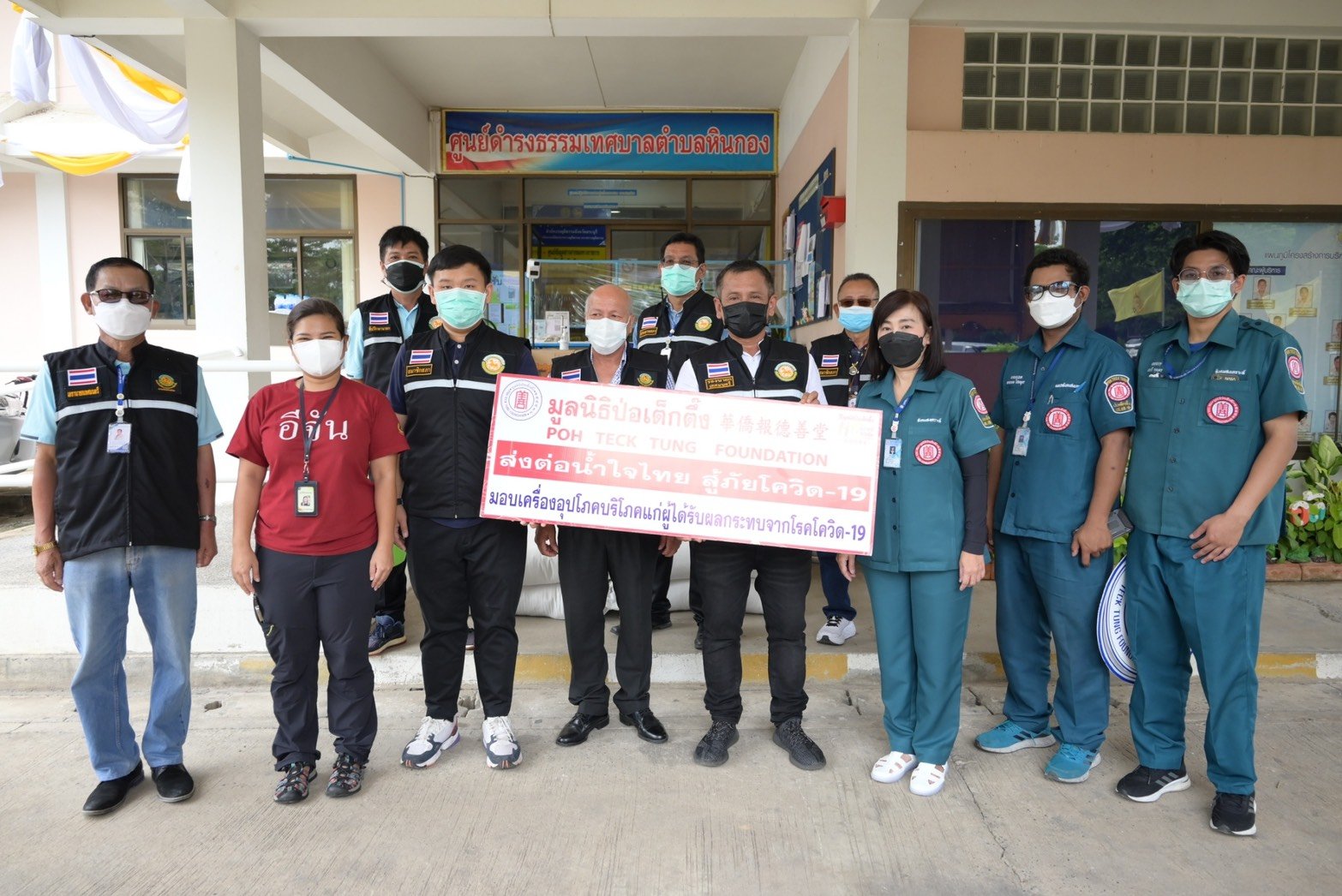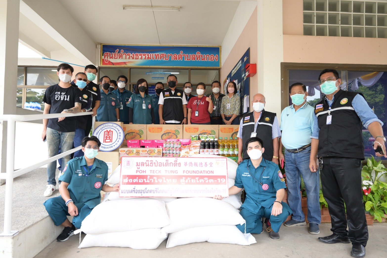 เวลาต่อมาวันเดียวกัน มูลนิธิป่อเต็กตึ๊ง นำโดยนางศิริพร กระจ่างหล้า หัวหน้าแผนกสังคมสงเคราะห์ นำทีมสังคมสงเคราะห์ลงพื้นที่มอบเครื่องอุปโภคบริโภค ในโครงการ “มูลนิธิป่อเต็กตึ๊ง ส่งต่อน้ำใจไทย สู้ภัยโควิด-19” เพื่อบรรเทาทุกข์ ประชาชนในพื้นที่ ต.หินกอง อ.หนองแค จ.สระบุรี ประกอบด้วย หน้ากากอนามัย จำนวน 5,000 ชิ้น ข้าวสาร 1,000 กิโลกรัม บะหมี่กึ่งสำเร็จรูป 1,800 ซอง ปลากระป๋อง 500 กระป๋อง ผักกาดดอง 240 ซอง น้ำมันพืช จำนวน 60 ขวด และน้ำปลาจำนวน 60 ขวด คิดเป็นมูลค่าทั้งสิ้น 41,461 บาท โดยมีนายวชิระ ทั่งสวัสดิ์ ปลัดเทศบาลตำบลหินกอง และนายธีรไชยเดช วงศ์ด้วง รองนายกเทศมนตรีตำบลหินกอง เป็นผู้รับมอบ ที่เทศบาลตำบลหินกอง อ.หนองแค จ.สระบุรี