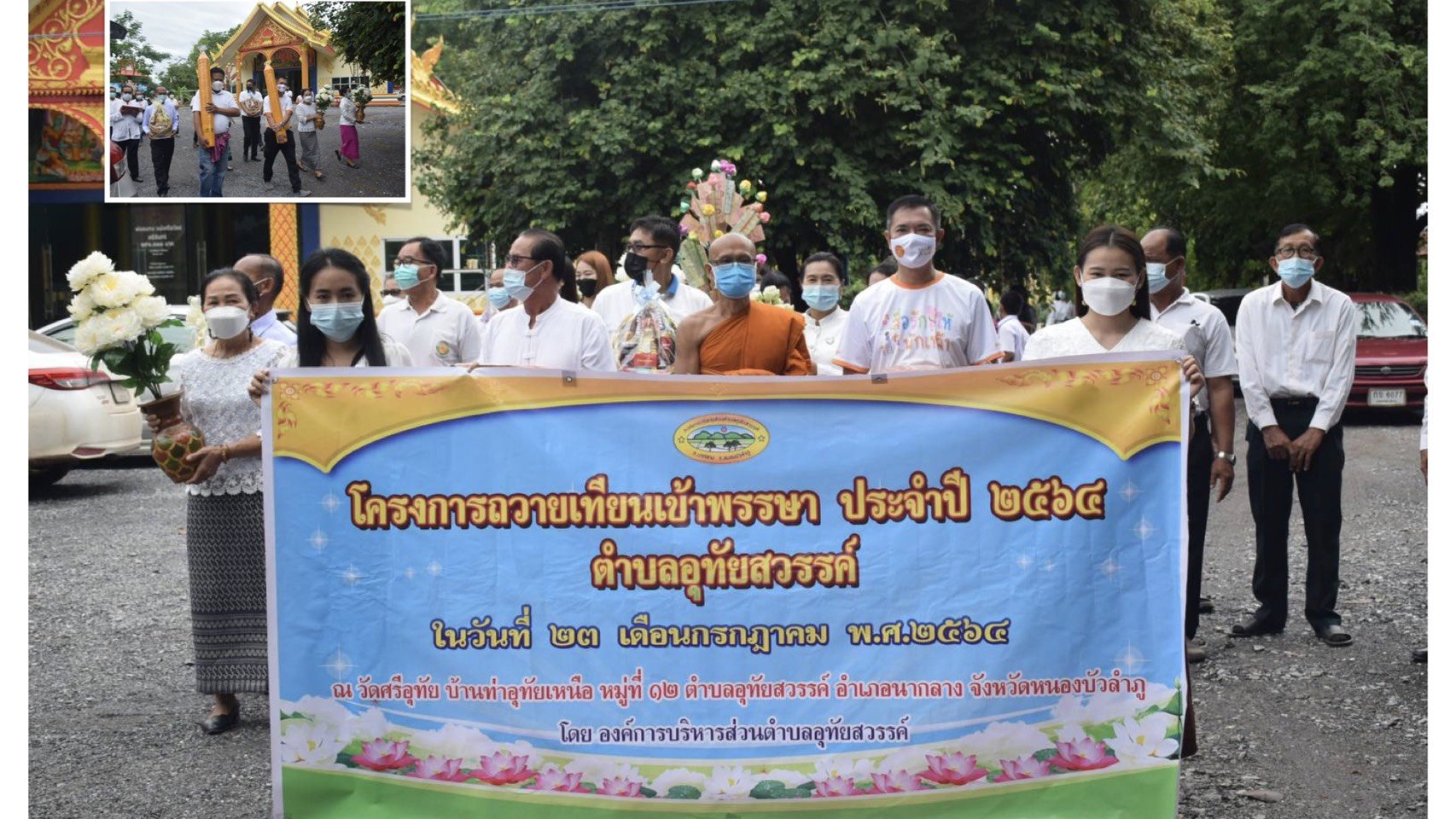 -ถวายเทียนพรรษา...ว่าที่ร้อยตรี รักชัย เลิศสุบิน นายอำเภอนากลาง จ.หนองบัวลำภู นายโชคดนัย นามโสม นายกองค์การบริหารส่วนตำบลอุทัยสวรรค์ นางวิริยา แก่นปัดชา ผู้ประสานงานเครือข่ายองค์กรงดเหล้า (สคล.)จ.หนองบัวลำภู ตลอดจนพุทธศาสนิกชนชาวบ้านท่าอุทัย ร่วมกันนำเทียนจำนำพรรษา พร้อมผ้าอาบน้ำฝน ปัจจัยไทยธรรม ถวายคณะสงฆ์วัดศรีอุทัย บ้านท่าอุทัย ต.อุทัยสวรรค์ อ.นากลาง จ.หนองบัวลำภู เพื่อเป็นการแสดงออกถึงความสามัคคีในหมู่คณะ และรักษาประเพณีวัฒนธรรมอันดีงามที่สืบทอดกันมายาวนาน ถือเป็นกิจกรรมที่เกี่ยวข้องกับวันสำคัญทางพระพุทธศาสนา โดยมีเจ้าอาวาสวัดศรีอุทัยรับเทียนพรรษาผ้าอาบน้ำฝน และปัจจัยไทยธรรม!!