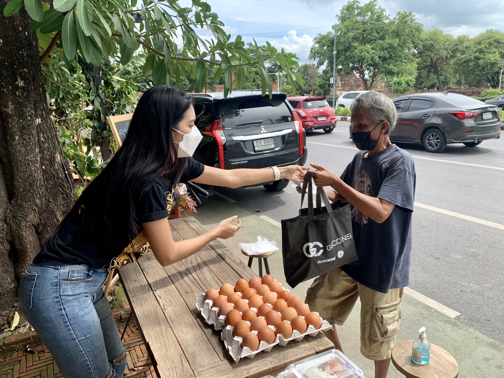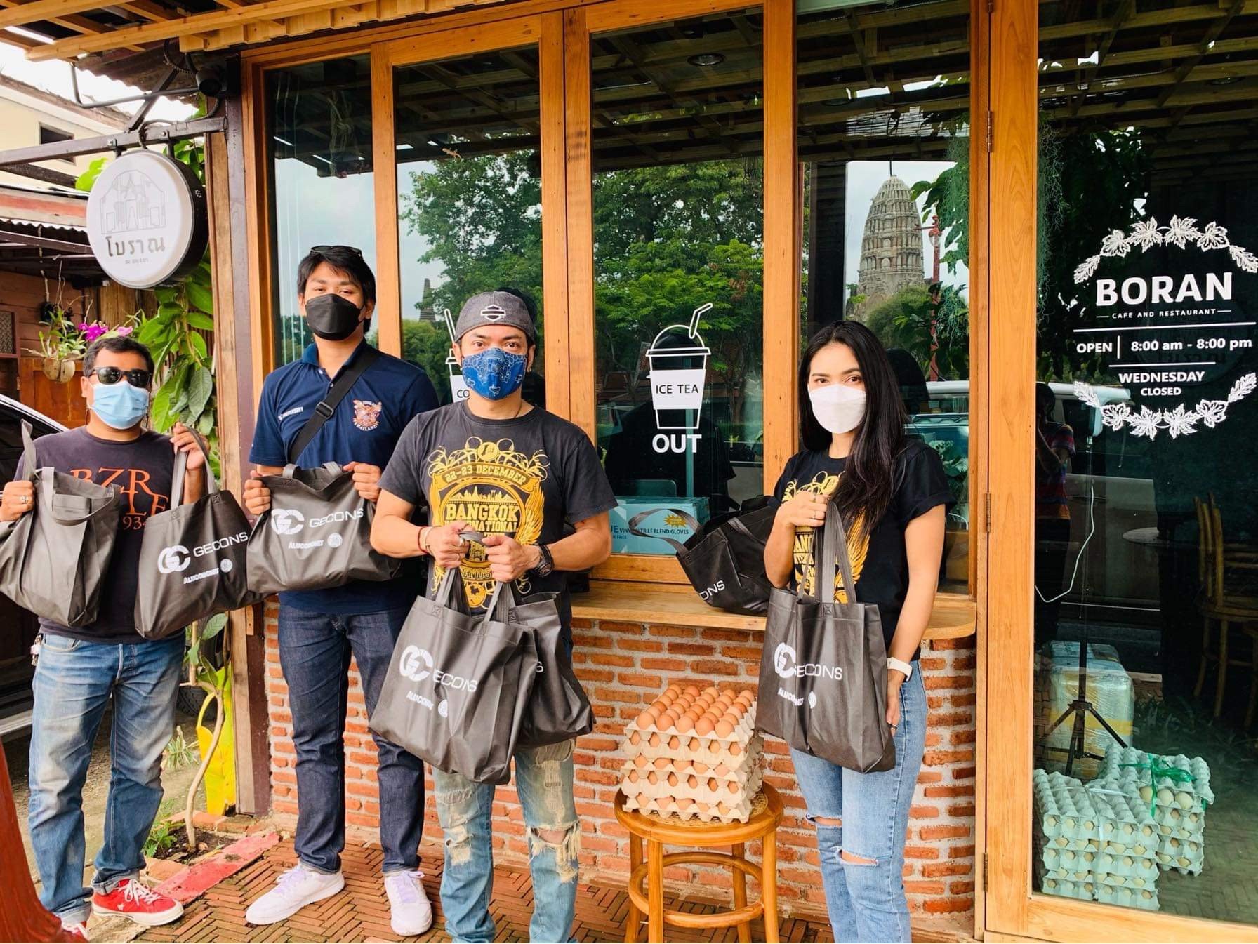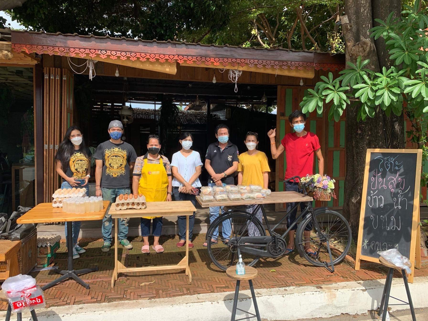 ขณะที่กำนันสมคิด นาคะตะ จัดทำโต๊ะปันสุข แจกอาหาร และสิ่งของจำเป็นให้ประชาชนในพื้นที่ อ.พระนครศรีอยุธยา ที่หน้าร้าน Boran cafe and restuarant ตรงข้ามวัดราชบูรณะ อ.พระนครศรีอยุธยา จ.พระนครศรีอยุธยา โดยมีนายจารุวัตร มารวิชัย น.ส.พัชชา ปริยวาที นายวุฒิกร จิตร์ซื่อ และนายเขมทัต ปานดวง ตัวแทนกลุ่ม Bluezone riders นำถุงยังชีพมาร่วมแจกให้กับชาวบ้านด้วยเช่นกัน.