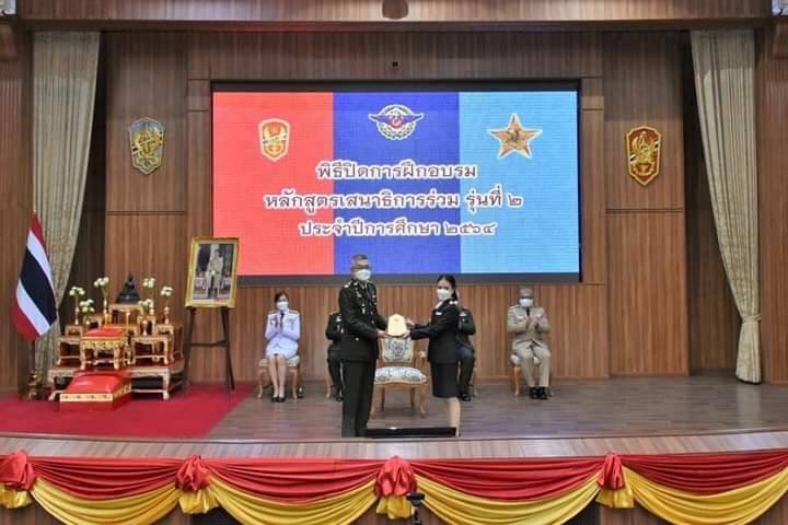 เมื่อวันก่อน (22 ก.ย.)พล.อ.ศิราวุฒิ วงศ์ขันตี ผู้บัญชาการสถาบันวิชาการป้องกันประเทศ เดินทางมาเป็นประธานพิธีปิดการฝึกอบรมหลักสูตรเสนาธิการร่วม รุ่นที่ 2 ประจำปีการศึกษา 2564 มีผู้จบหลักสูตรฯทั้งหมด 40 คน โดยนาวาโทหญิง วราภรณ์ บุญเขียน หัวหน้าแผนกเภสัชกรรม กองแพทย์โรงเรียนช่างฝีมือทหาร สถาบันวิชาการป้องกันประเทศ กองบัญชาการกองทัพไทย ได้รับโล่ 3 โล่ คือ 1.นายทหารนักเรียนดีเด่น (ได้จารึกชื่อที่วิทยาลัยเสนาธิการทหาร) 2.ผู้มีผลการศึกษาดีเด่น หมวด 2 ยุทธศาสตร์ความมั่นคงแห่งชาติ 3. ผู้มีผลการเรียนดีเด่น หมวดที่ 3 การทหารและฝ่ายเสนาธิการร่วม.