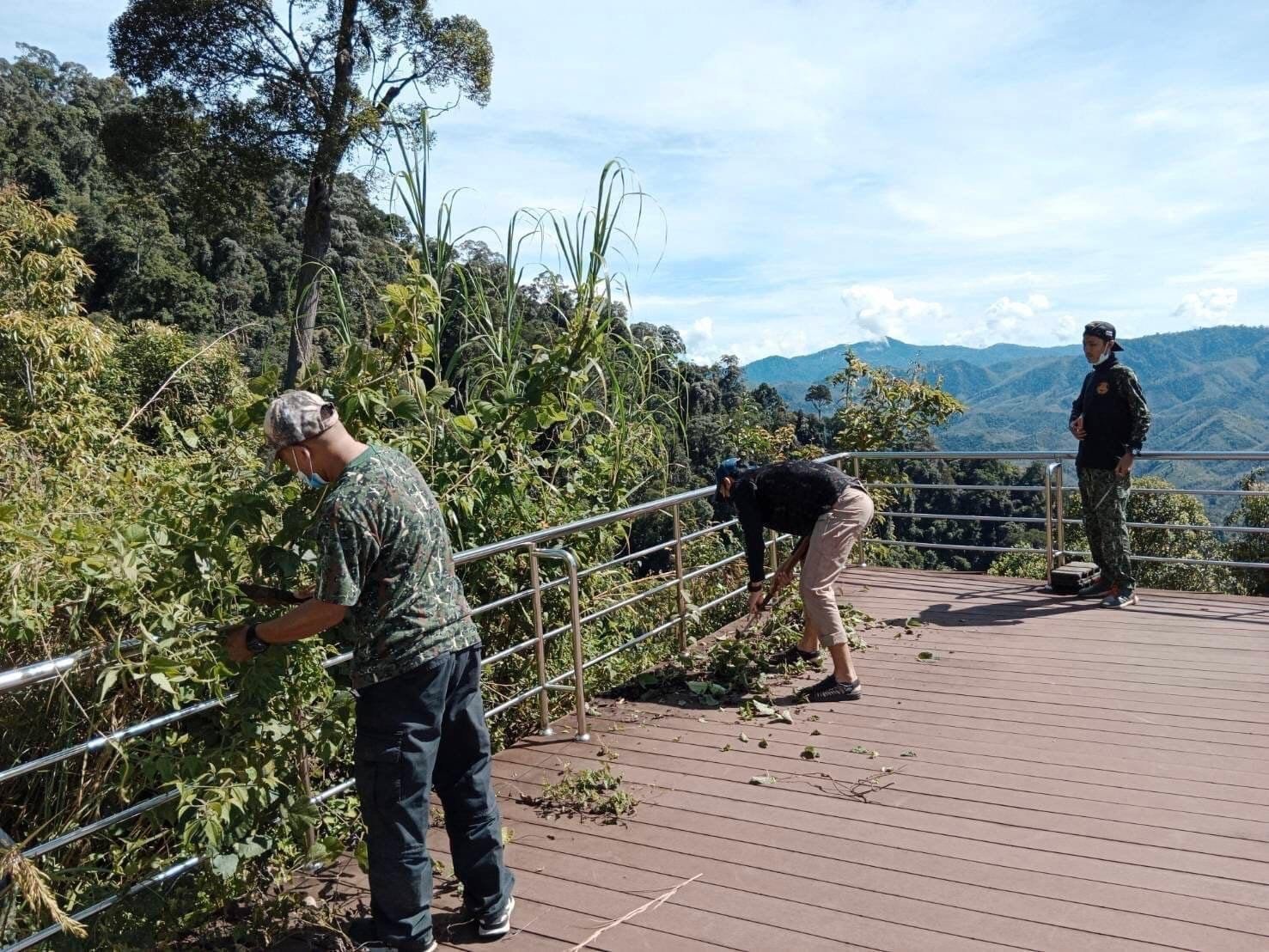 วันนี้ ( 30 พ.ย.) บริเวณลานหน้าสกายวอล์ค ทะเลหมอกอัยเยอร์เวง ต.อัยเยอร์เวง อ.เบตง จ.ยะลา เจ้าหน้าที่ป่าไม้ เจ้าหน้าที่การไฟฟ้าอำเภอเบตง และเจ้าหน้าที่ อบต.อัยเยอร์เวง ทำความสะอาด ปรับภูมิทัศน์ บริเวณลานสกายวอล์ค ทะเลหมอกอัยเยอร์เวง เพื่อความเป็นระเบียบเรียบร้อยและความสวยงาม รวมทั้งเพื่อให้เกิดความประทับใจแก่ผู้มาเยือนและความภาคภูมิใจของชาวอำเภอเบตงทุกคน และพร้อมเปิดให้นักท่องเที่ยวได้เข้าชมแล้วในวันที่ 1 ธ.ค.นี้
