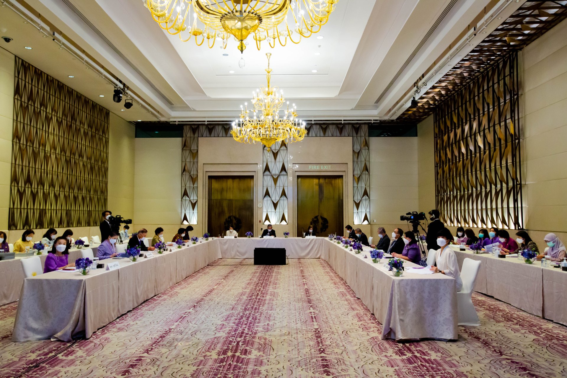ในที่ประชุมได้นำเสนอผลการดำเนินงานและความก้าวหน้าของของมูลนิธิรางวัลสมเด็จเจ้าฟ้ามหาจักรีที่ผ่านมา อาทิ โครงการส่งเสริมและสนับสนุนการพัฒนาการเรียนรู้เด็กและเยาวชนในถิ่นทุรกันดาร โครงการพูดอ่านเขียนไทย โรงเรียนในโครงการตามพระราชดำริ จ.น่าน และราชบุรี โดยความร่วมมือของสภากาชาดไทย กองทุนเพื่อความเสมอภาคทางการศึกษา มหาวิทยาลัยเกษตรศาสตร์ มหาวิทยาลัยเทคโนโลยีพระจอมเกล้าธนบุรี และ สพป.น่าน เขต 2 เนื่องจากโรงเรียนส่วนใหญ่เป็นโรงเรียนขนาดเล็ก มีครูไม่ครบชั้น และประชากรส่วนใหญ่เป็น กลุ่มชาติพันธุ์ อีกทั้งสถานการณ์โควิด-19 ทำให้เกิดภาวะการเรียนรู้ถดถอย จึงออกแบบสื่อการเรียนรู้และวิธีการทำงานเพื่อให้ครูในโรงเรียนสามารถสอนภาษาไทยได้ดีขึ้น โดยการจัดทำสื่อการเรียนภาษาที่หลากหลายเน้นการใช้ในชีวิตประจำวัน และมีอาสาสมัครการศึกษาในพื้นที่ที่พูดภาษาถิ่นได้ทำงานร่วมกับครูประจำวิชาและครูที่เชี่ยวชาญอย่างเป็นระบบ ซึ่งผลของการดำเนินงานพบว่า คะแนน NT ด้านภาษาไทย ดีขึ้นจาก 35.96 คะแนน ในปี 2562 เป็น 40.42 คะแนน ในปี 2563 และคะแนนการอ่าน จากเดิมที่ต่ำกว่าทุกสังกัด ในปี 2563 อยู่ที่ 74.34 คะแนน สูงกว่าคะแนนเฉลี่ยระดับประเทศ อยู่ที่ 73.02 คะแนน และรูปแบบอาสาสมัครการศึกษา (อศม.) จะมีการขยายผลออกไปในพื้นที่ 14 จังหวัด