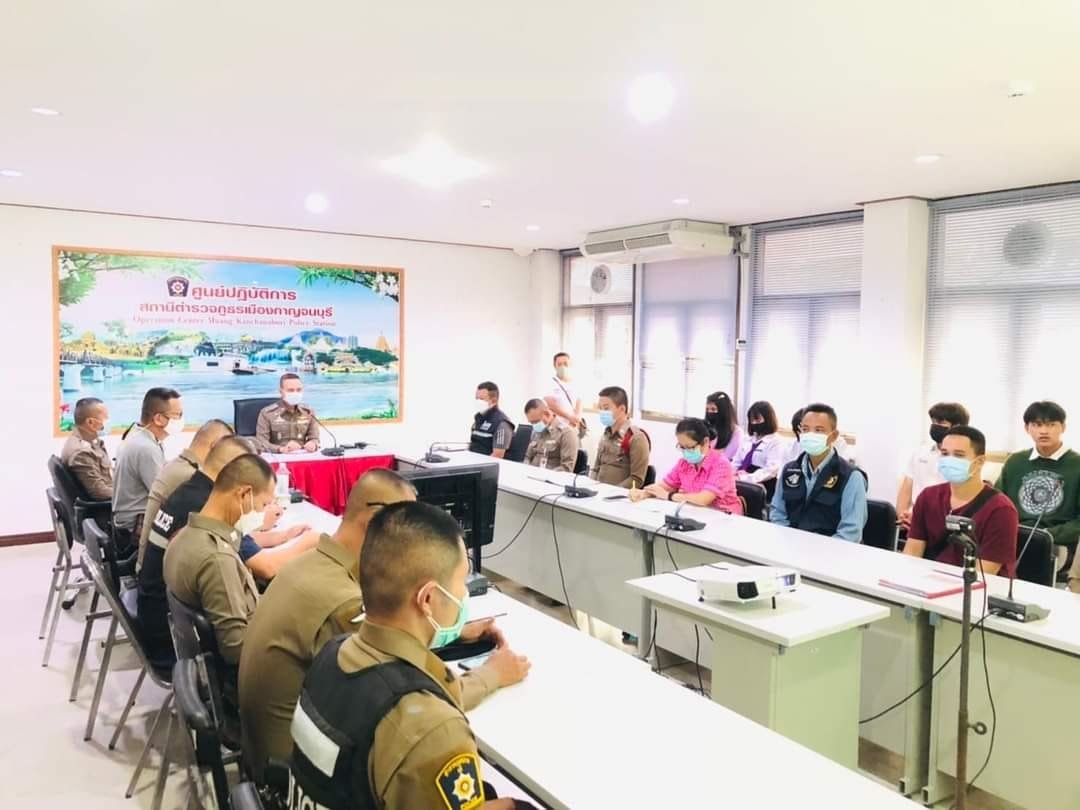 เมื่อวันก่อน (22 มิ.ย.)พ.ต.อ.สมเกียรติ โฉมฉาย ผกก.สภ.เมืองกาญจนบุรี พร้อมตำรวจ สภ.เมืองกาญจนบุรี และ จนท.รพ.พหลพลพยุหเสนา,จนท.มูลนิธิพิทักษ์กาญจน์,นักศึกษาฝึกหัดงาน สภ.เมืองกาญจนบุรี ร่วมกันซักซ้อมแผนเผชิญเหตุทะเลาะวิวาท กรณีสมมุติเหตุมีกลุ่มนักเรียนประมาณ 10 คน ก่อเหตุทะเลาะวิวาทกันที่ลานจอดรถ ห้างโรบินสันมีผู้รับบาดเจ็บ รถหน่วยกู้ชีพมูลนิธิพิทักษ์กาญจน์นำผู้บาดเจ็บส่ง รพ.พหลฯ