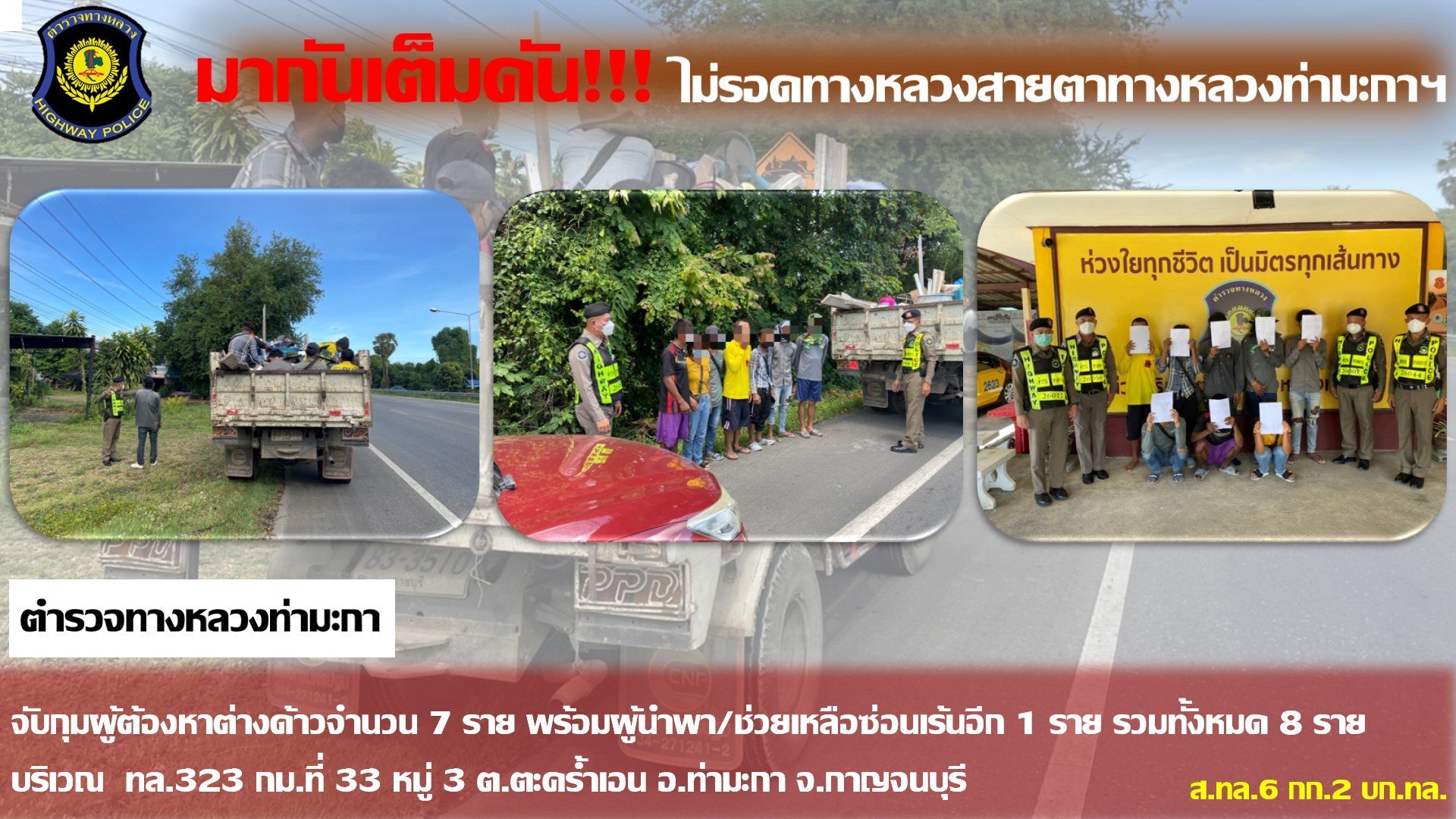 เมื่อวันก่อน ตำรวจทางหลวงท่ามะกา จ.กาญจนบุรี ร่วมกันจับกุมต่างด้าว และผู้นำพาฯ