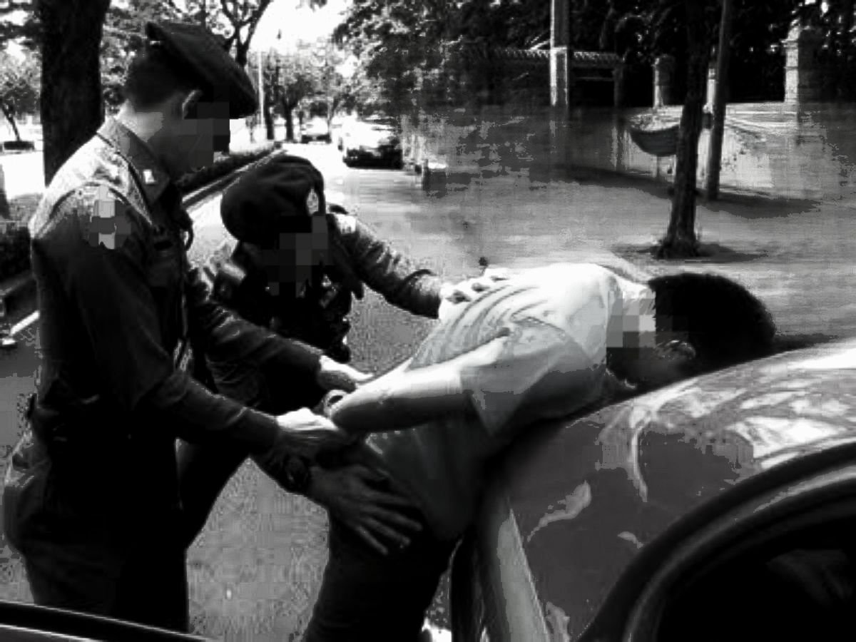 -ก่อนที่อีกฝ่ายจะเอามือล้วงกระเป๋ากางเกง ก็รีบบอกไปว่าแบบมือให้ดูก่อน ทำเอาคู่กรณีไม่สบอารมณ์ตะคอกใส่“เมิงหัวหมอเหรอ กูไม่ยัดเมิงหรอก”พร้อมกับเสียงจาก ว.ที่ชายฉกรรจ์ถืออยู่ดังขึ้น “ว่าไงได้ของกลางเท่าไหร่ มันเป็นใครชื่ออะไรว่ะ”ปลายสายตอบไปว่า “ค้นแล้วไม่มีครับนาย” บอกตรงๆตอนนั้นโมโหกับคำพูด และการกระทำที่ทำเหมือนเราไม่ใช่คน เมื่อไม่เจอของกลางคู่กรณีตะคอกต่อว่า“เมิงเอาบัตรประชาชนมาให้กุดูหน่อย คนไทยหรือป่าวว่ะ”เอาแล้วไงเปลี่ยนข้อหาจับยามาจับต่างด้าวซะแล้ว!! ลืมเอามามีแต่บัตรพนักงาน....เอาออกมาให้กรูดูเมิงทำงานที่ไหน!!และแล้วช่วงนาทีระทึกก็มาถึงอีกฝ่ายเห็นบัตรพนง.ระบุชัดเจนระบุเป็นสื่อฯสำนักหนึ่ง ทั้ง 2 คนถึงกับหน้าถอดสี บังเอิญเสียง ว.ดังขึ้นอีกครั้ง “รู้ยังมันเป็นใคร” ตอบกลับ “พลาดครับนายพี่เขาเป็นนักข่าวที่....” เสียงที่ตามมาคือ...เวรแล้วไงจับผิดตัว พวกเอ็งรีบปล่อยเขาไปเลยเร็ว!!!
