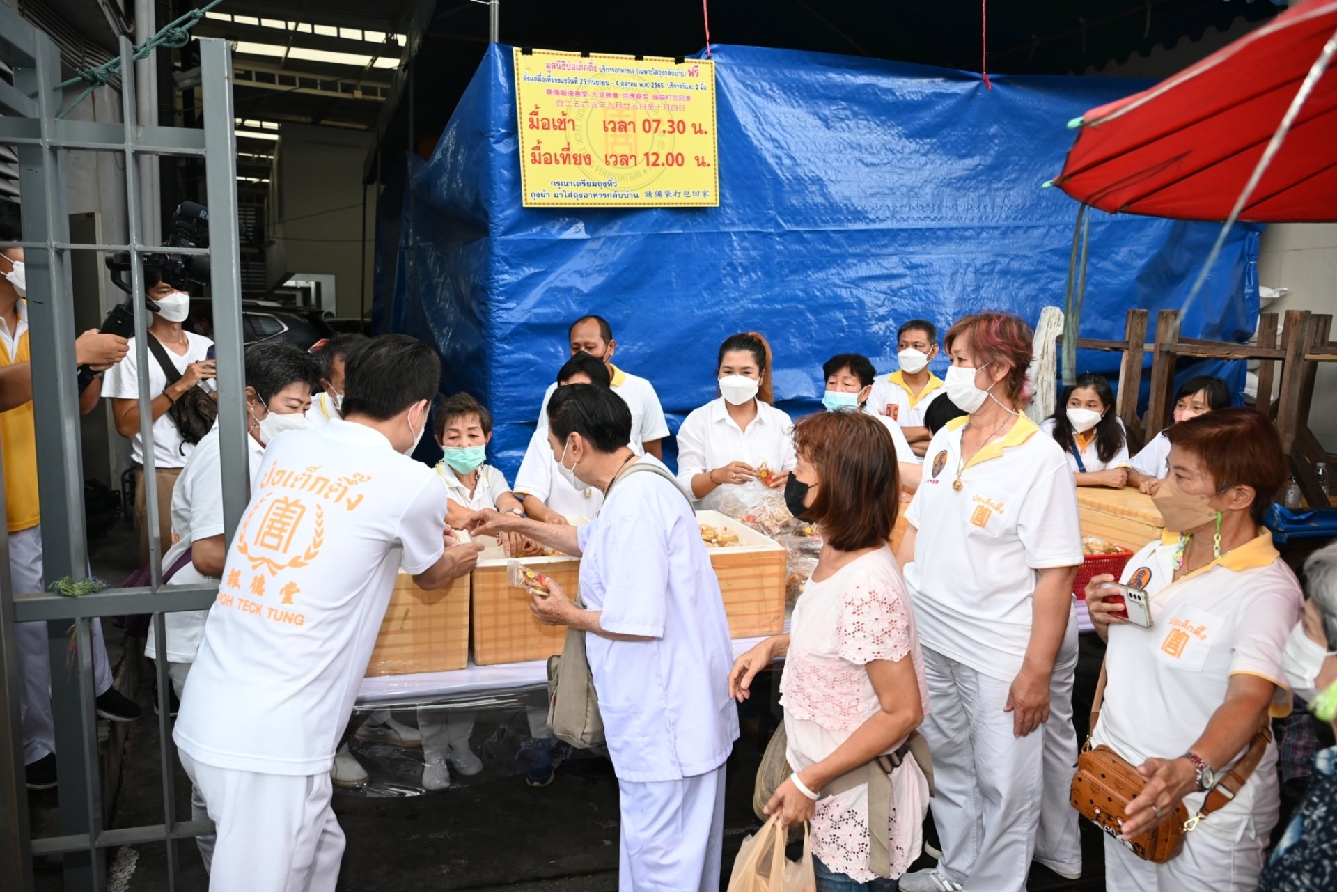 โดยในวันที่ 25 ก.ย. – 4 ต.ค.มูลนิธิฯจัดให้มีบริการอาหารเจ [ในรูปแบบบรรจุถุงกลับบ้าน] แก่ประชาชน..ฟรีโดยบริการวันละ 2 มื้อ (เช้า และกลางวัน) โดยเริ่มบริการตั้งแต่มื้อเที่ยงของวันที่ 25 ก.ย.เป็นต้นไป ทั้งนี้ขอความกรุณาประชาชนผู้เข้ารับบริการอาหารเจนำถุงหิ้ว/ถุงผ้ามาบรรจุอาหารด้วยทุกครั้ง นอกจากนี้ระหว่างวันที่ 26 ก.ย.- 2 ต.ค.ขอเชิญชวนประชาชนชมอุปรากรจีน (งิ้ว) ที่คณะลูกศิษย์หลวงปู่ไต้ฮงจัดถวายรวม 7 คืน บริเวณฝั่งสำนักงาน มูลนิธิป่อเต็กตึ๊ง พลับพลาไชย กรุงเทพฯ