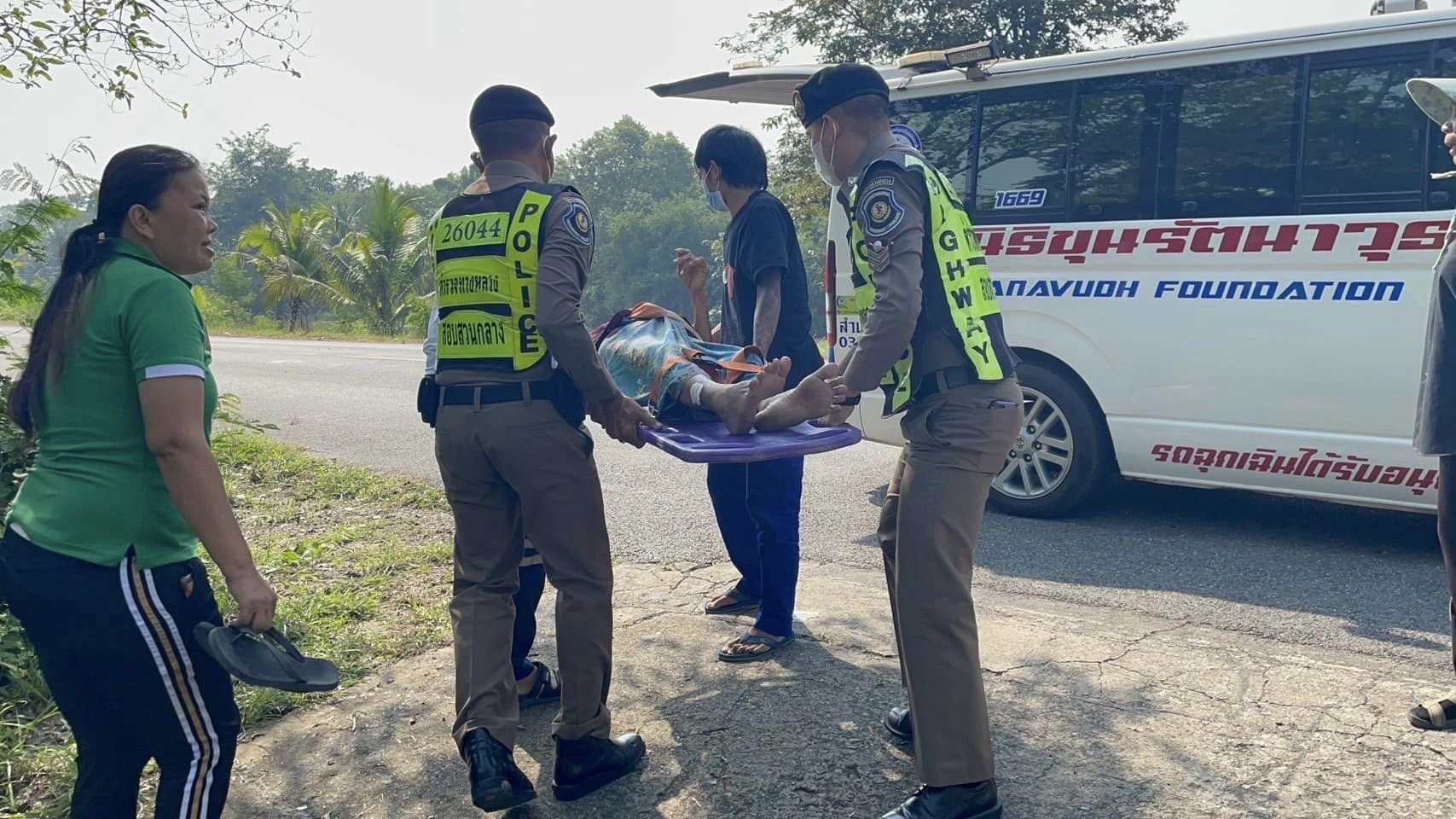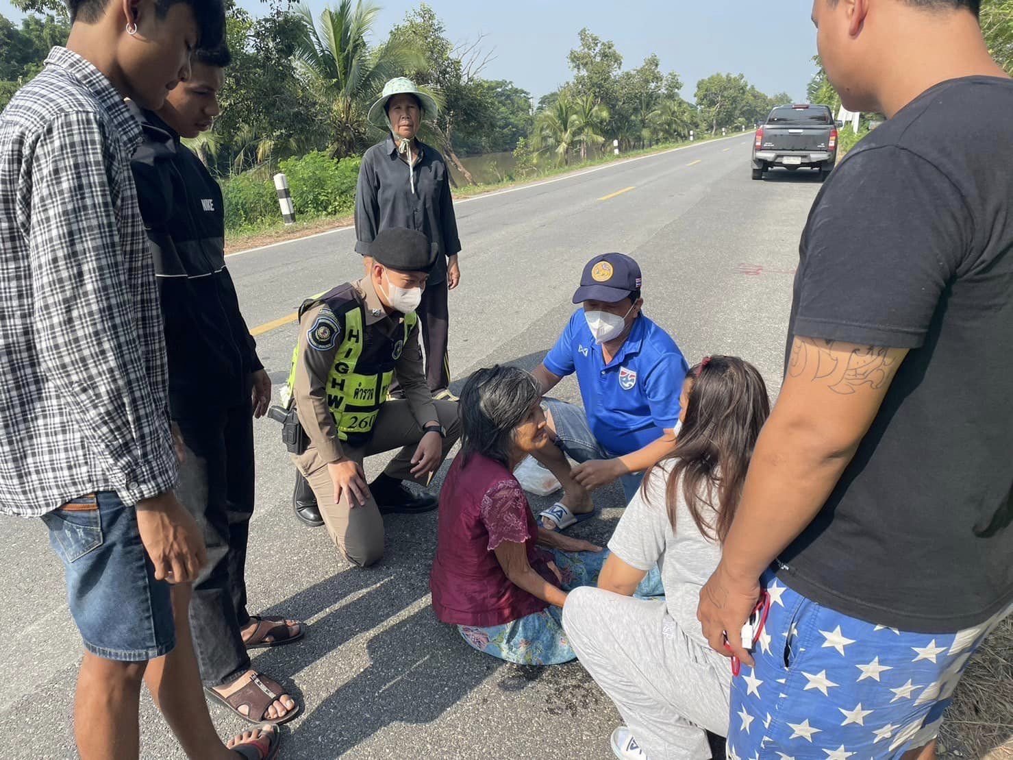 เมื่อวันก่อน (20 ต.ค.)ขณะที่สายตรวจตำรวจทางหลวงท่ามะกา จ.กาญจนบุรี ส.ทล.6กก.2 บก.ทล.(ตำรวจทางหลวงกาญจน์-สุพรรณฯ)ออกปฏิบัติหน้าที่บริเวณ ทล.323 ในเขตรับผิดชอบ ระหว่างทางพบหญิงชราทราบชื่อว่ายายทรัพย์ เกิดอุบัติเหตุเป็นลมล้มฟุบอยู่ริมถนน จึงรีบจอดรถเข้าให้การช่วยเหลือปฐมพยาบาลเบื้องต้น พร้อมประสานเจ้าหน้าที่กู้ภัยฯเร่งมาเคลื่อนย้ายผู้ป่วยไปยังที่ปลอดภัย ก่อนนำตัวส่งรพ.ตรวจอย่างละเอียด.