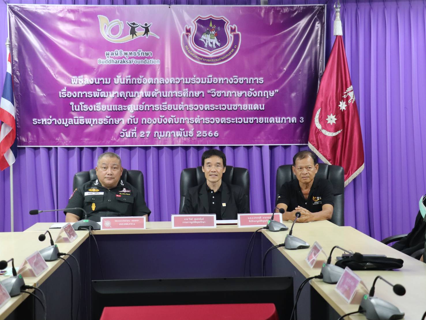 เมื่อเร็ว ๆ นี้ (27 ก.พ.)พล.ต.ต.ประกอบ พลเตชา ผบก.ตชด.ภาค 3 พ.ต.อ.อพิวัฒน์ กลั่นวารี รอง ผบก.ตชด.ภาค 3(กร) และ ผกก.ตชด.31-34 ร่วมลงนามบันทึกข้อตกลงร่วมทางวิชาการ "การพัฒนาศักยภาพการสอนวิชาภาษาอังกฤษของ รร.ตชด.ในสังกัด บก.ตชด.ภาค 3" (80 โรงเรียน) ร่วมกับทางมูลนิธิพุทธรักษา โดยมีผู้แทนมูลนิธิฯคือ ดร.วิทย์ สุนทรนันท์ รองประธานมูลนิธิพุทธรักษา พ.ต.อ.ประกฤติ ยามานนท์ ที่ปรึกษามูลนิธิพุทธรักษา นายฉันท์ชนก ดุรงค์ฤทธิ์ชัย ผู้จัดการอาวุโส มูลนิธิพุทธรักษา โดยมูลนิธิฯจะสนับสนุนทั้งการฝึกอบรมพัฒนาครู ตชด.ผู้สอนวิชาภาษาอังกฤษ เช่นการส่งครู ตชด.ภาษาอังกฤษไปดูงานที่ประเทศภูฐาน ตลอดจนสนับสนุนเงินเพิ่มสำหรับจัดหาสื่ออุปกรณ์คนละ 500 บาท/เดือน โดยเริ่มดำเนินการตั้งแต่ปีการศึกษา 2566 เป็นต้นไป