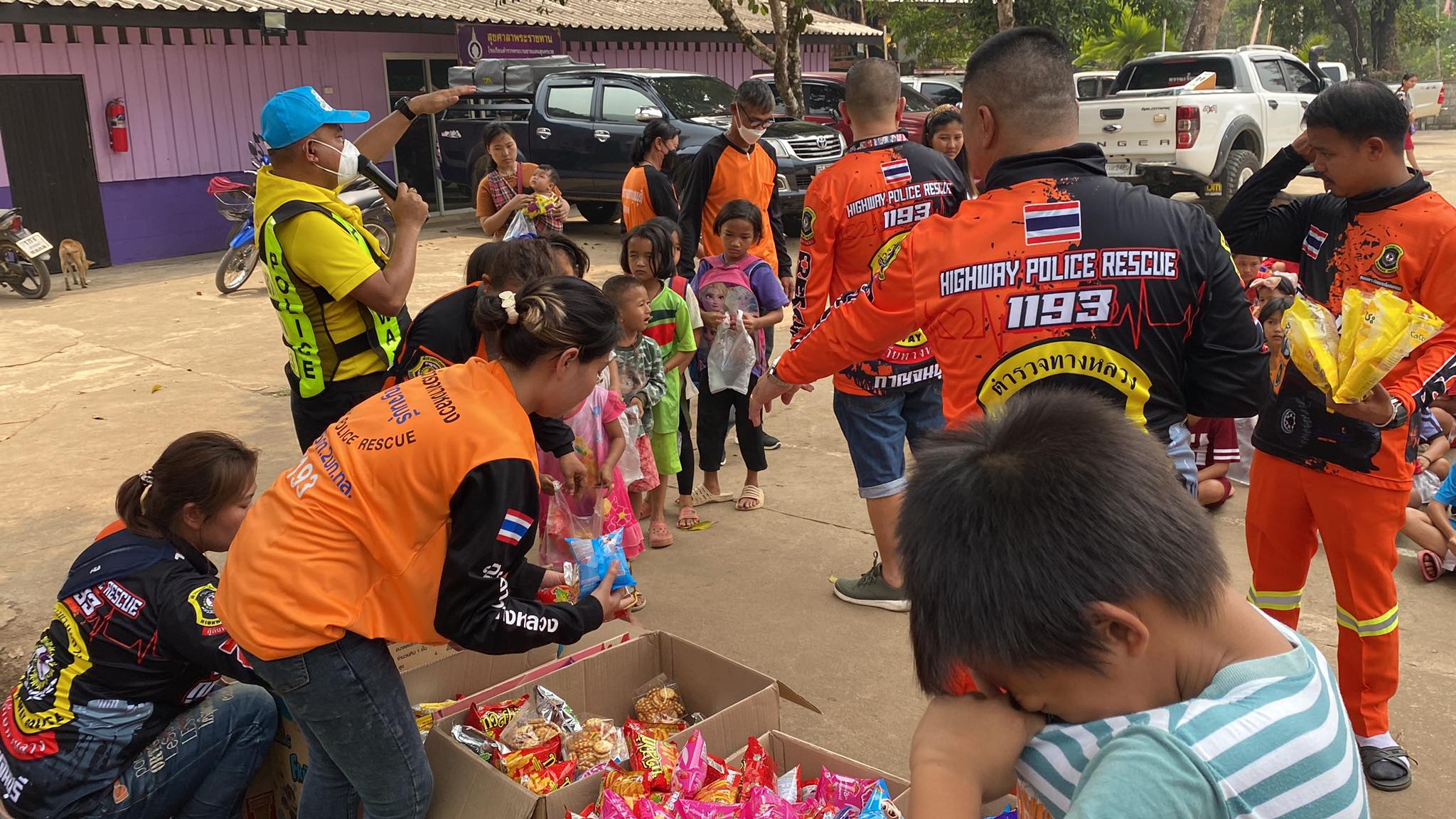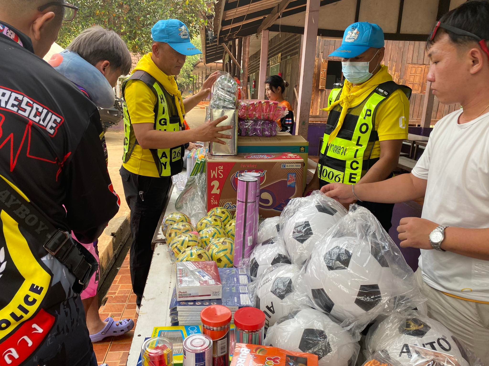 ทางหลวงจิตอาสา...โปลิศทางหลวงไทรโยค ร่วมกับอาสาจราจรฯ-กู้ภัยตำรวจทางหลวงกาญจนบุรี ลงพื้นที่มอบอุปกรณ์การเรียน-กีฬา พร้อมเลี้ยงอาหารเด็กนักเรียนโรงเรียนตำรวจตระเวนชายแดน ต.ไล่โว่ อ.สังขละบุรี