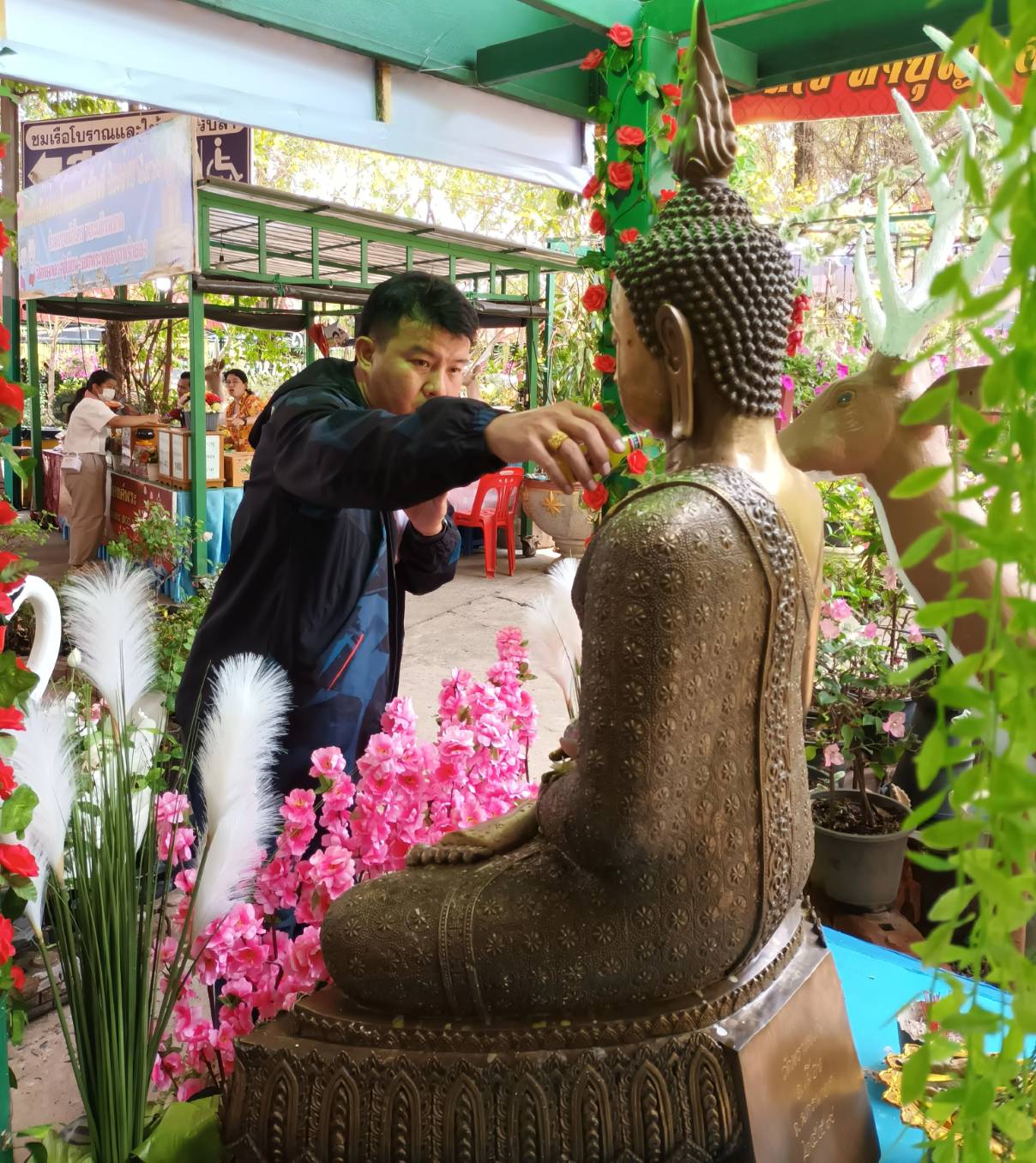หยุดสงกรานต์คนแห่กราบไหว้"หลวงพ่อปากแดง"กันเต็มวัด สิ่งสำคัญขาดไม่ได้หลับตาพนมมือขอพรให้ถูกหวยรวยเต็มคาราเบลกันเช่นเคย เพ่งมองน้ำตาเทียน-เซียมซีเสี่ยงโชค ตาดีพารวย-ตาซวยพาจน