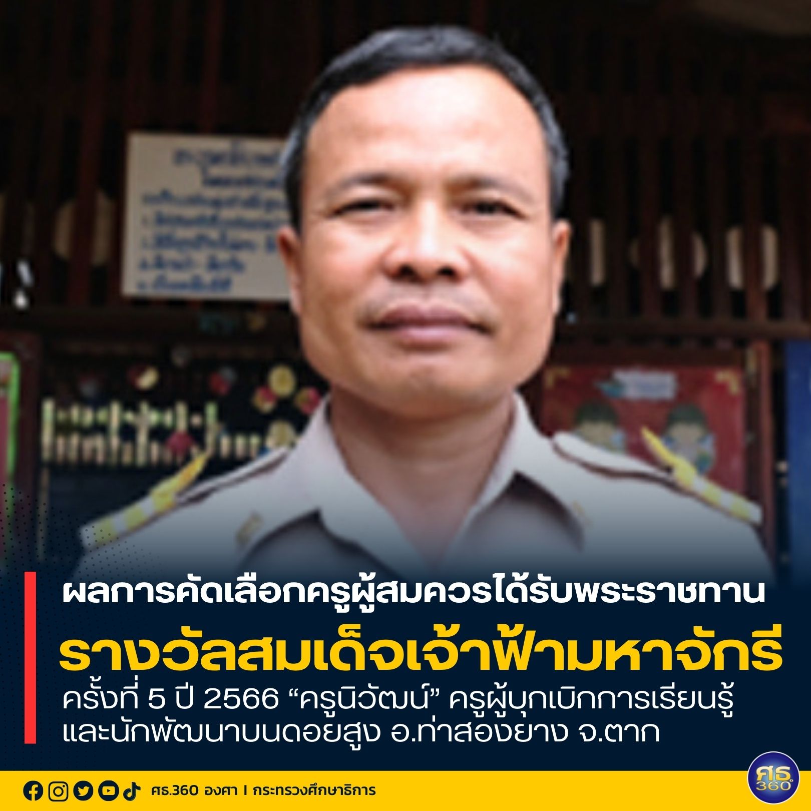 คณะกรรมการมูลนิธิรางวัลสมเด็จเจ้าฟ้ามหาจักรี พิจารณาเห็นชอบการคัดเลือกครูผู้สมควรได้รับพระราชทานรางวัลสมเด็จเจ้าฟ้ามหาจักรี ครั้งที่ 5 ปี 2566 “ครูนิวัฒน์” ครูผู้บุกเบิกการเรียนรู้และนักพัฒนาบนดอยสูง