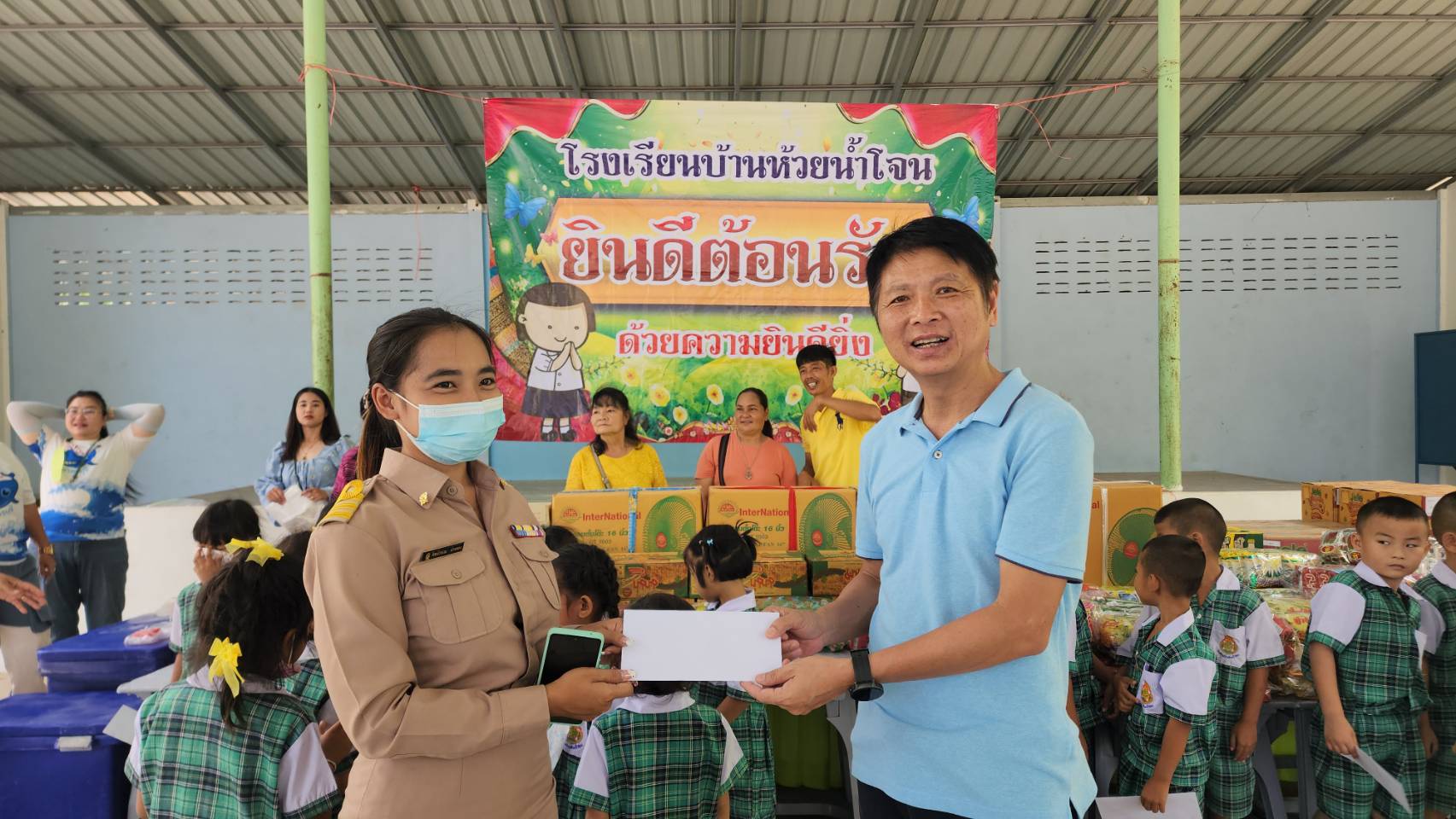 โดยมีนายภิญโญ โพธิเพียรทอง ตัวแทนกลุ่มปันสุข...ปันยิ้ม (สาครบุรี) และนายบุญเลิศ โกมลหิรัญ ตัวแทนชมรมคนหลังเลนส์ เป็นตัวแทนผู้มีจิตศรัทธาที่ร่วมบริจาคเงิน และสิ่งของ จากพี่ ๆ น้อง ๆ ใน จ.สมุทรสาคร ได้ร่วมแบ่งปันรอยยิ้มให้กับน้อง ๆ มอบสิ่งของ ขนม อาหาร เครื่องดื่ม ชุดโต๊ะนักเรียน และทุนการศึกษาทุนละ 500 บาท จำนวน 50 ทุน รวมเป็นเงิน 25,000 บาท ให้กับโรงเรียนบ้านห้วยน้ำโจน อ.ท่าม่วงและโรงเรียนวัดบ้านเก่า ซึ่งยังขาดอุปกรณ์การเรียนการสอนเพื่อเพิ่มความรู้ให้กับน้อง ๆ ประกอบด้วย Notebook จำนวน 1 เครื่อง มูลค่า 16,900 บาท และโทรทัศน์ขนาด 55 นิ้ว จำนวน 1 เครื่อง มูลค่า 13,990 บาท รวม 30,890 บาท ทั้งนี้ขอบคุณทุกท่าน รวมถึงสถานที่พักในกิจกรรมโดย Good Time Resort จ.กาญจนบุรี.