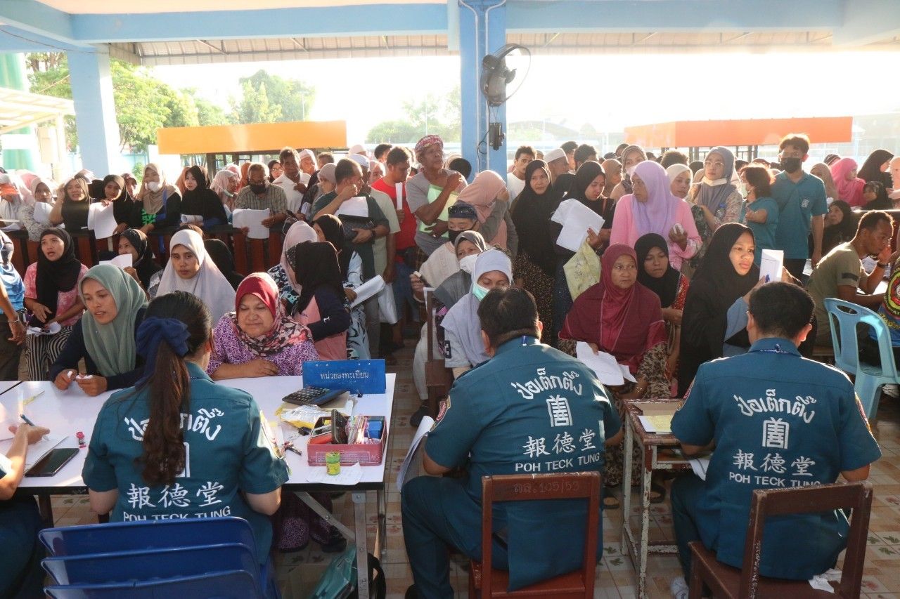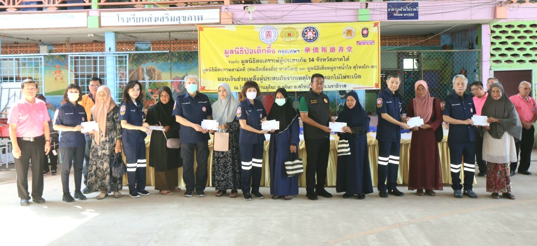 พร้อมกันนี้มูลนิธิสงเคราะห์ผู้ประสบภัย 14 จังหวัดภาคใต้ ได้มอบเงินช่วยเหลือแก่ญาติผู้เสียชีวิตรายละ 5,000 บาท มอบเงินช่วยเหลือแก่ผู้บาดเจ็บคนละ 2,000 บาท และมอบเงินช่วยเหลือให้แก่ผู้ประสบภัยคนละ 1,000 บาท รวมเป็นเงินทั้งสิ้น 1,847,000 บาท โดยมีนายปรีชา นวลน้อย รองผู้ว่าฯนราธิวาส เป็นประธานในพิธี พร้อมด้วยมูลนิธิสงเคราะห์ผู้ประสบภัย 14 จังหวัดภาคใต้ เป็นผู้ประสานงานและร่วมให้ความช่วยเหลือ รวมทั้งอาสาสมัครมูลนิธิป่อเต็กตึ๊ง นำโดยนางศิริวรรณ โอภาสวงศ์ อาสาสมัครกิตติมศักดิ์ และนางศิริพร โอภาสวงศ์ อาสาสมัครกิตติมศักดิ์ คณะมูลนิธิมิตรภาพสามัคคี (ท่งเซียเซี่ยงตึ๊ง) หาดใหญ่ คณะมูลนิธิเซิ่งหมู่ธารน้ำใจ สุไหงโก-ลก มูลนิธิแม่กอเหนี่ยวยะลา และคณะมูลนิธิร่วมบำเพ็ญการกุศลปัตตานี (ท่งเต็กเซี่ยงตึ๊ง) ร่วมในพิธี ที่โรงเรียนบ้านมูโนะ อำเภอสุไหง-โกลก จังหวัดนราธิวาส รวมงบประมาณการช่วยเหลือจากมูลนิธิป่อเต็กตึ๊ง และมูลนิธิสงเคราะห์ผู้ประสบภัย 14 จังหวัดภาคใต้ เป็นเงินทั้งสิ้น 7,430,000 บาท