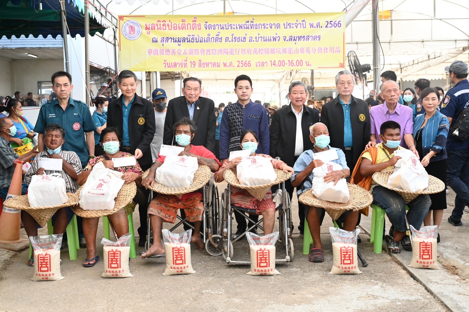 มูลนิธิป่อเต็กตึ๊ง จัดงานประเพณีทิ้งกระจาด ประจำปี 2566 แจกจ่ายเครื่องอุปโภคบริโภคแก่ผู้ยากไร้ ที่สุสานมูลนิธิป่อเต็กตึ๊ง อ.บ้านแพ้ว จ.สมุทรสาคร
