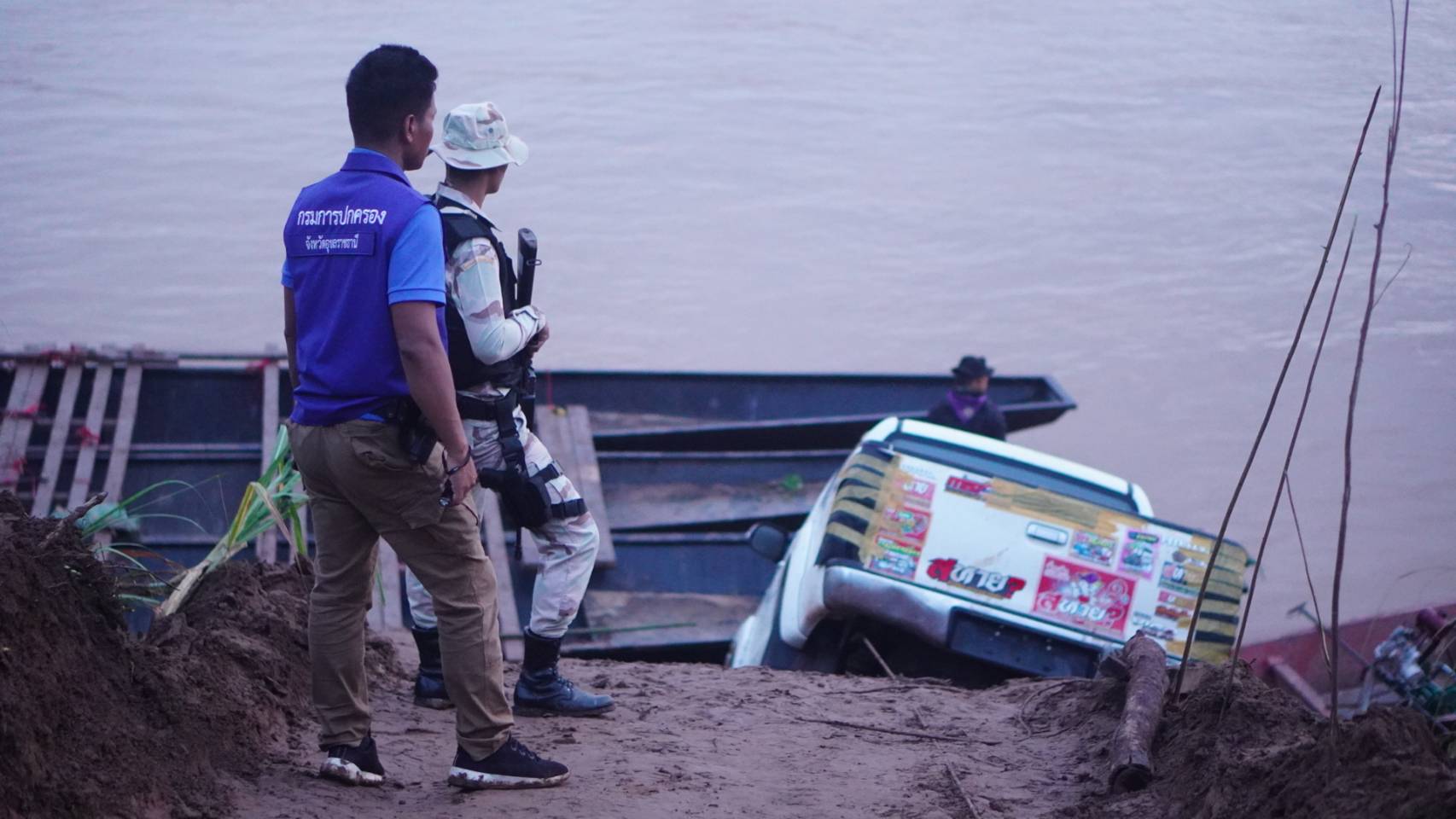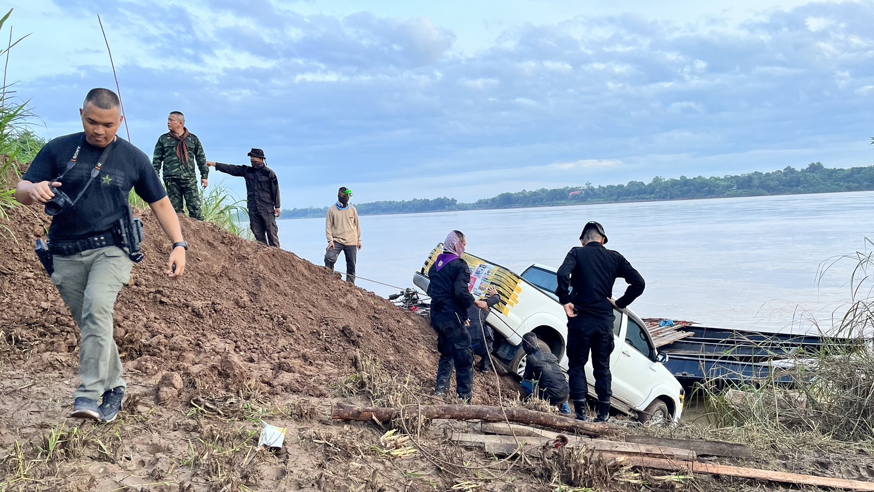 กระทั่งเวลาประมาณ 01.30 น. ได้ยินเสียงเรือแล่นในแม่น้ำโขงมาจอดเทียบฝั่งบริเวณป่ารกทึบ จากนั้นไม่นานพบกลุ่มคนจำนวนหนึ่งกำลังช่วยกันนำรถยนต์ลงไปยังริมตลิ่งโดยใช้เชือกผูกที่กันชนท้ายผูกติดกับรถแทรกเตอร์ค่อยๆ ปล่อยให้รถไหลลงไปยังตลิ่ง