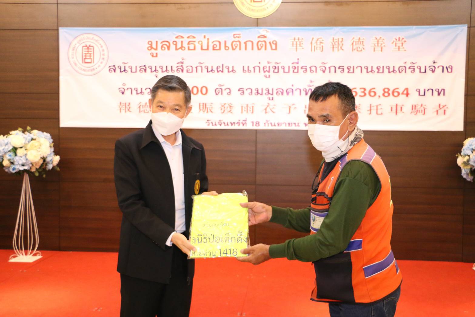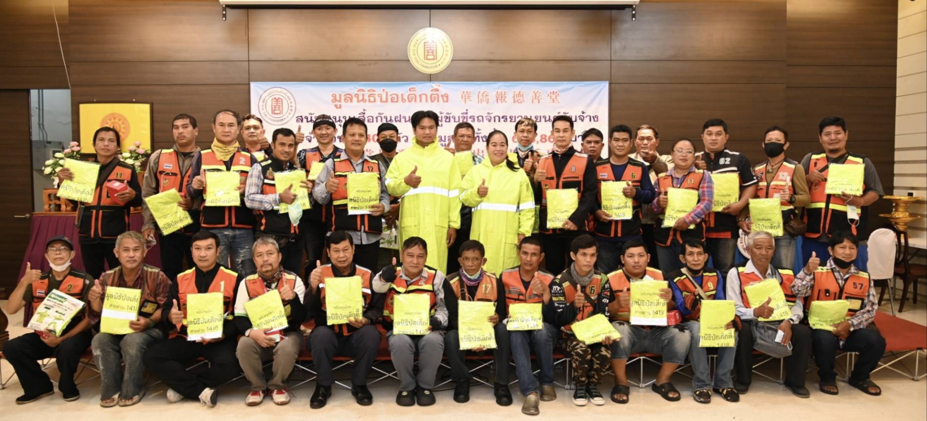 ใส่ใจทุกเรื่อง...มูลนิธิป่อเต็กตึ๊ง ห่วงใย.. มอบเสื้อกันฝน 2,400 ตัว ให้กับผู้ขับขี่รถจักรยานยนต์รับจ้าง ฝ่าฤดูฝนอย่างปลอดภัย รวมมูลค่ากว่า 6 แสนบาท
