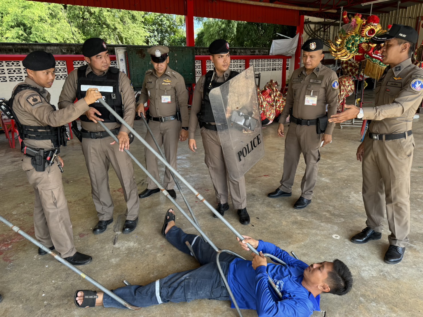 กระทั่งช่วงบ่าย พ.ต.อ.ธราดล พร้อมเจ้าหน้าที่ สภ.ทับคล้อ สายตรวจชุด 60 10 20 สายตรวจเขาทราย และฝ่ายสืบสวนร่วมกันปฎิบัติการซักซ้อมแผนเผชิญเหตุชิงทรัพย์ร้านสะดวกซื้อในพื้นที่.