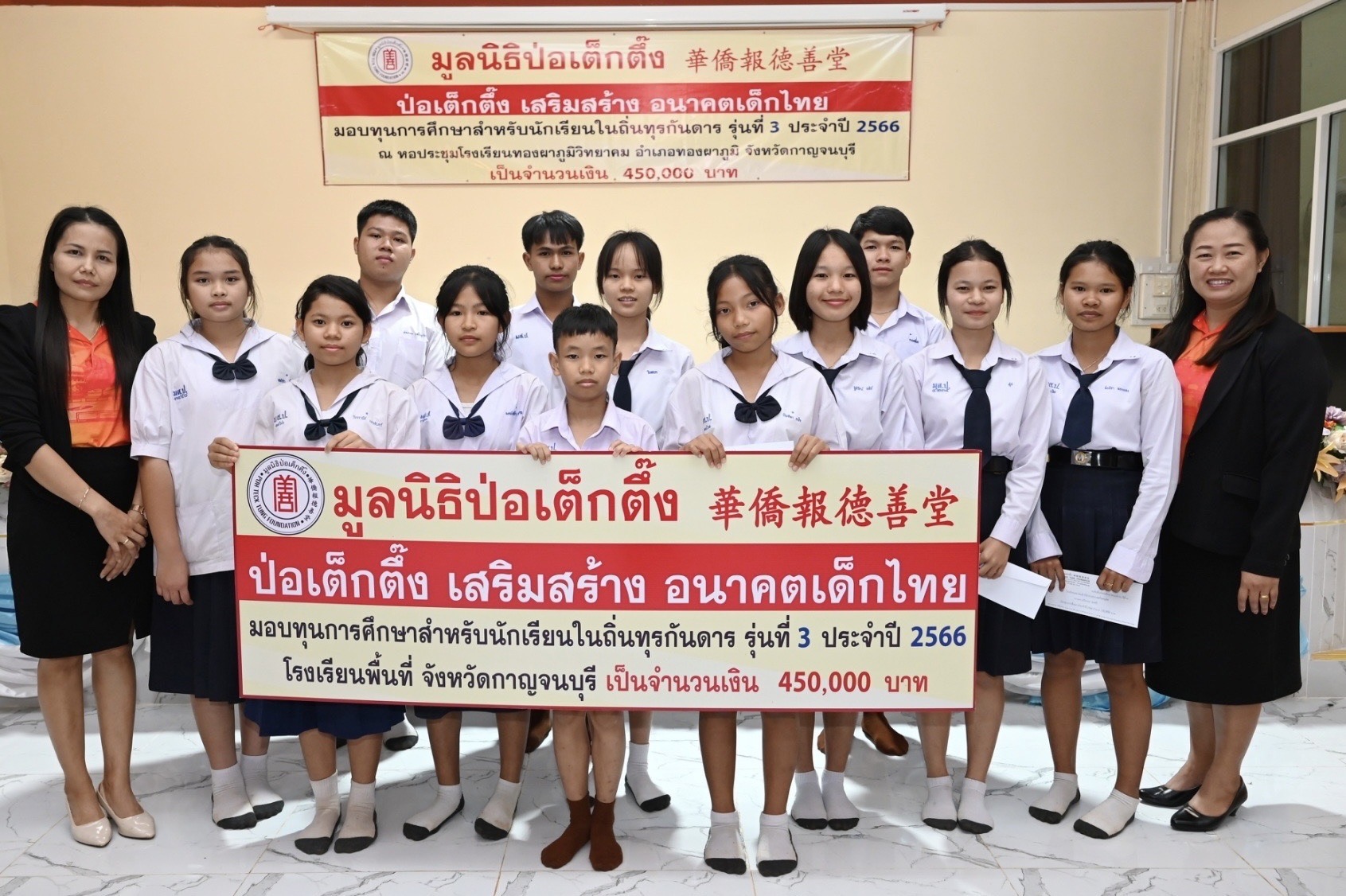 เมื่อวานนี้ ( 7 ธ.ค.) มูลนิธิป่อเต็กตึ๊ง นำโดย นายนิพนธ์ ลีละศิธร กรรมการมูลนิธิฯ พร้อมด้วย นางสาวดวงชุตา ติยะพจนพรกุล ผู้ช่วยผู้จัดการฝ่ายสังคมสงเคราะห์ นำทีมแผนกส่งเสริมการศึกษาและอาชีพลงพื้นที่ จ.กาญจนบุรี มอบทุนการศึกษาระดับมัธยมศึกษาสำหรับเยาวชนโรงเรียนตำรวจตระเวนชายแดน รุ่นที่ 3 (ครั้งที่ 1) ประจำปี 2566 ประกอบด้วย โรงเรียนราชประชานุเคราะห์ 45 อ.พนมทวน โรงเรียนร่มเกล้ากาญจนบุรี (ในพระราชดำริ) โรงเรียนทองผาภูมิวิทยาคม โรงเรียนสมาคมป่าไม้แห่งประเทศไทยอุทิศ โรงเรียนบ้านเกริงกระเวีย โรงเรียนบ้านห้วยเสือ อ.ทองผาภูมิ และโรงเรียนอุดมสิทธิศึกษา อ.สังขละบุรี รวม 7 แห่ง จำนวน 60 ทุน รวมงบประมาณทั้งสิ้น 450,000 บาท นอกจากนี้มูลนิธิฯยังได้มอบผ้าห่มกันหนาวพร้อมขนมให้กับนักเรียนที่เข้ารับมอบทุนฯ โดยจัดพิธีมอบทุนการศึกษา ที่หอประชุม โรงเรียนทองผาภูมิวิทยาคม อ.ทองผาภูมิ จ.กาญจนบุรี