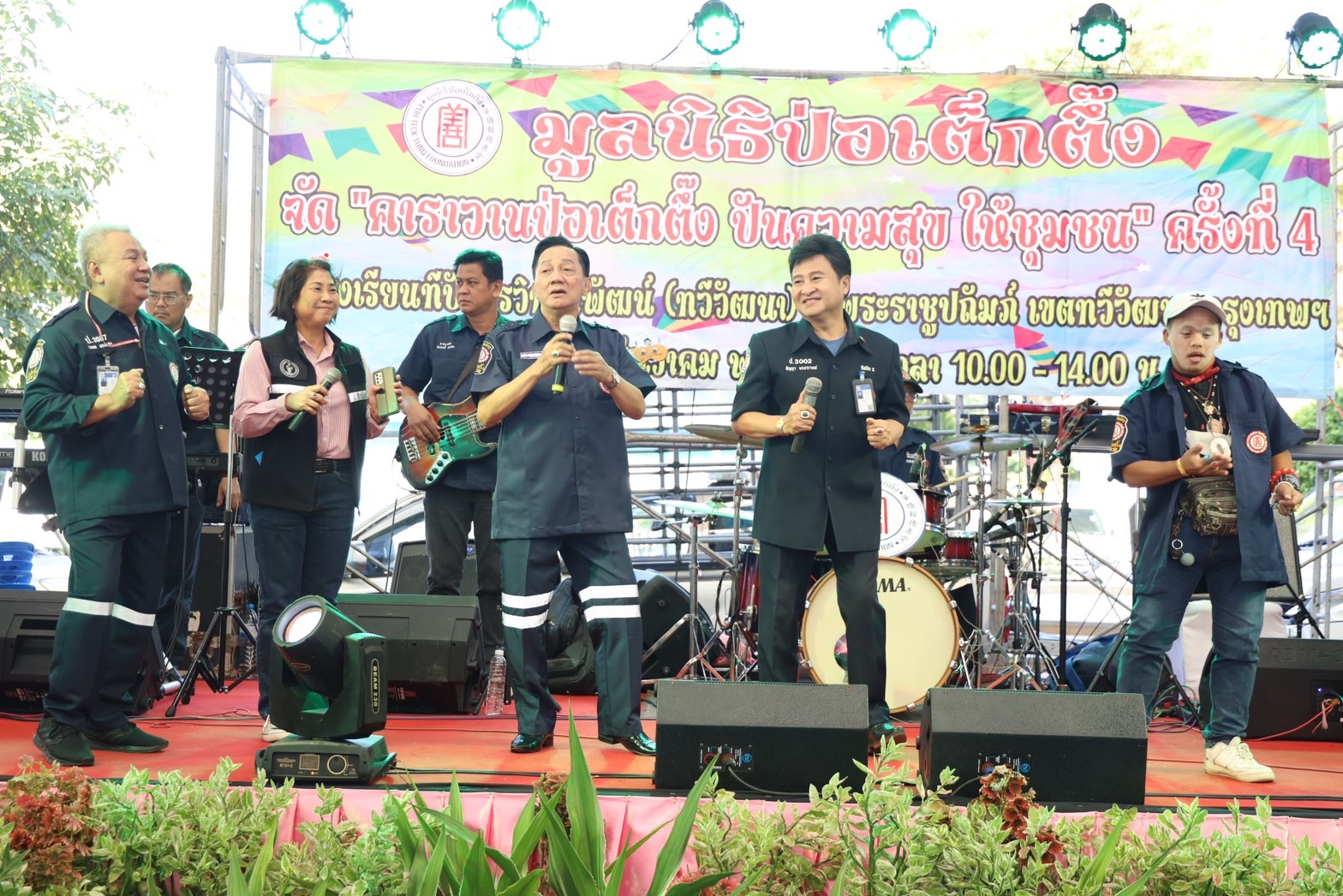 วันที่ 23 ธ.ค.มูลนิธิป่อเต็กตึ๊ง นำโดยนายสัก กอแสงเรือง รองประธานกรรมการมูลนิธิฯ เป็นประธานในพิธี พร้อมด้วยนางศิริกุล โอภาสวงศ์ กรรมการและเลขาธิการ และนายจารุรัตน์ คุณัตถานนท์ กรรมการและเหรัญญิก จัดคาราวาน “ป่อเต็กตึ๊ง ปันความสุข ให้ชุมชน” ครั้งที่ 4 ส่งท้ายปีเก่า-ต้อนรับปีใหม่ ยกทัพอาสาสมัครศิลปิน มูลนิธิป่อเต็กตึ๊ง นำโดย นายสัญญา พรนารายณ์ นายสดใส โรจนวิชัย (สดใส รุ่งโพธิ์ทอง) นายนพดล ทรงแสง (จิ้ม ชวนชื่น) นายธวัชชัย คชาอนันต์ (แฮ็ค ชวนชื่น) นายปิยะวัฒน์ รัตนหรูวิจิตร (หรูหรา) นางสาวอธิชา เทศขำ (เมย์-อธิชา) และอาสาสมัครศิลปินอีกหลายท่าน มอบความสุขพร้อมจัดกิจกรรมแจกของขวัญ และของรางวัลสุดพิเศษกว่า 100 รายการ