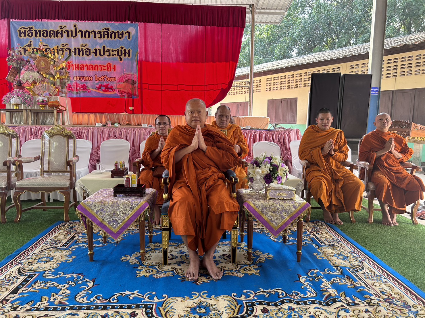 เจ้าคณะจังหวัดฉะเชิงเทรา-รองผู้ว่าฯ ทอดผ้าป่าเพื่อการศึกษาหาทุนสร้างหอประชุมเพื่อเป็นสถานที่ในการดำเนินกิจกรรมต่าง ๆ ของนักเรียนโรงเรียนบ้านลาดกระทิง