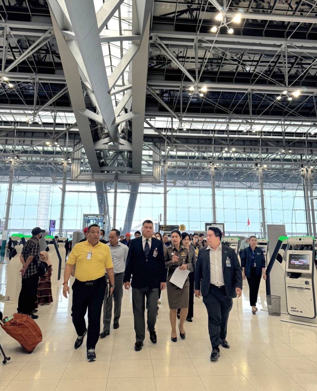 จากกรณีสำนักงานตรวจคนเข้าเมืองเปิดเผยเหตุระบบ ตม.ล่ม กระทบต่อปริมาณผู้โดยสารที่ท่าอากาศยานสุวรรณภูมิ โดยเฉพาะขาออก ซึ่งผู้โดยสารต้องรีบขึ้นเครื่องในช่วงเวลาจำกัด ตั้งแต่เช้ามืดวันที่ 24 ม.ค.จนถึงช่วงเที่ยงก็ยังคงติดขัดอยู่ โดยเมื่อเวลา 12.50 น. วันที่ 24 ม.ค.พล.ต.อ.วิสนุ ปราสาททองโอสถ ประธานกรรมการ บริษัทท่าอากาศยานไทย จำกัด (มหาชน) (AOT) ลงพื้นที่ท่าอากาศยานสุวรรณภูมิ เพื่อตรวจสอบเหตุดังกล่าว พร้อมด้วยดร.กีรติ กิจมานะวัฒน์ กรรมการผู้อำนวยการใหญ่ AOT และนายกิตติพงศ์ กิตติขจร ผู้อำนวยการท่าอากาศยานสุวรรณภูมิ โดยเดินตรวจพื้นที่ ตม.ขาออก และขาเข้า