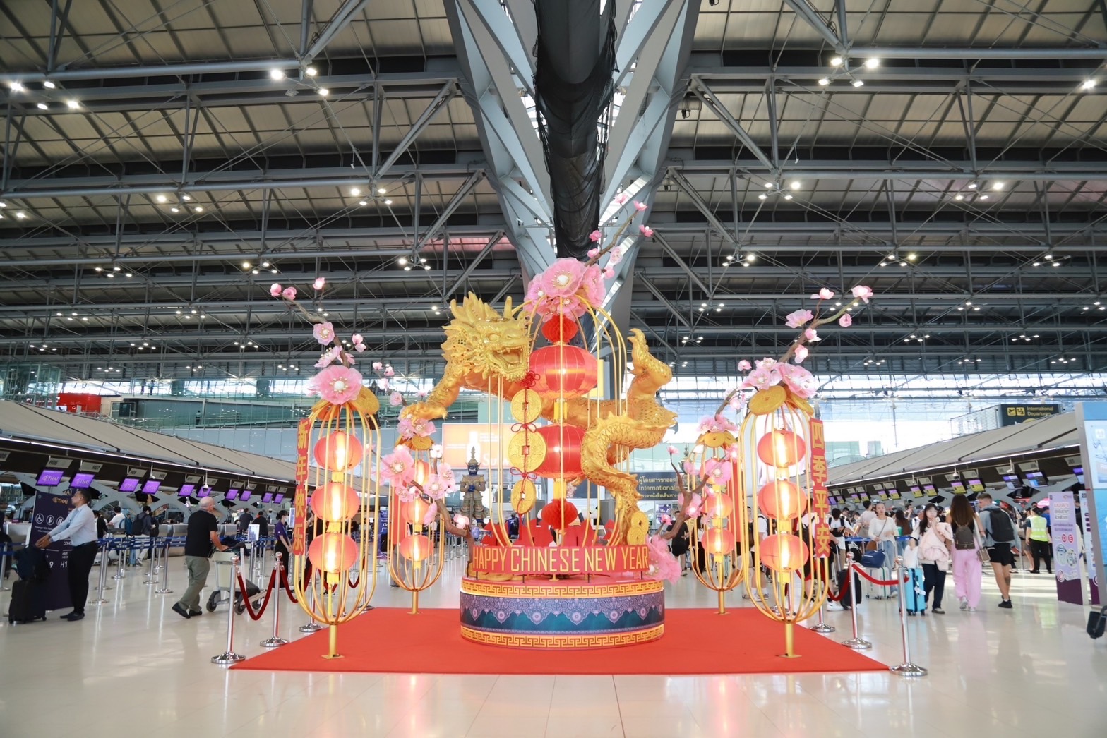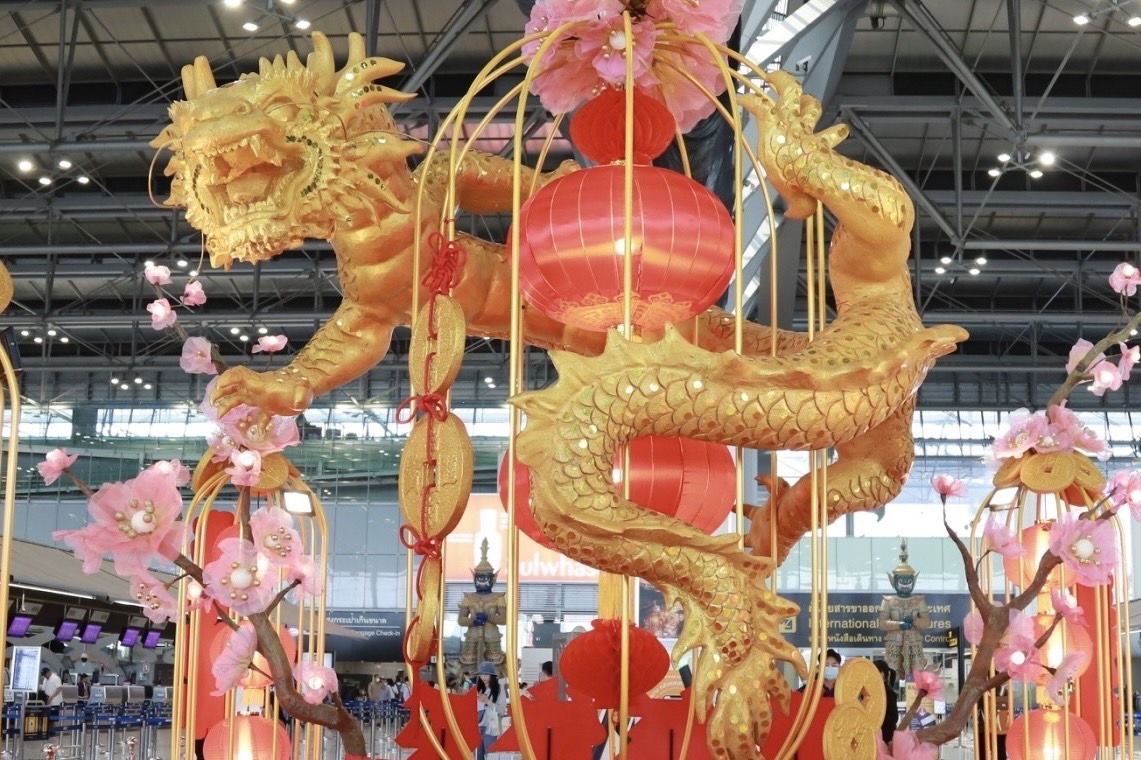 ท่าอากาศยานสุวรรณภูมิเนรมิตมังกรทองแต่งแต้มสีสันเฉลิมฉลองเทศกาลตรุษจีนวันที่ 5 - 24 ก.พ.นี้ บริเวณเคาน์เตอร์เช็กอิน