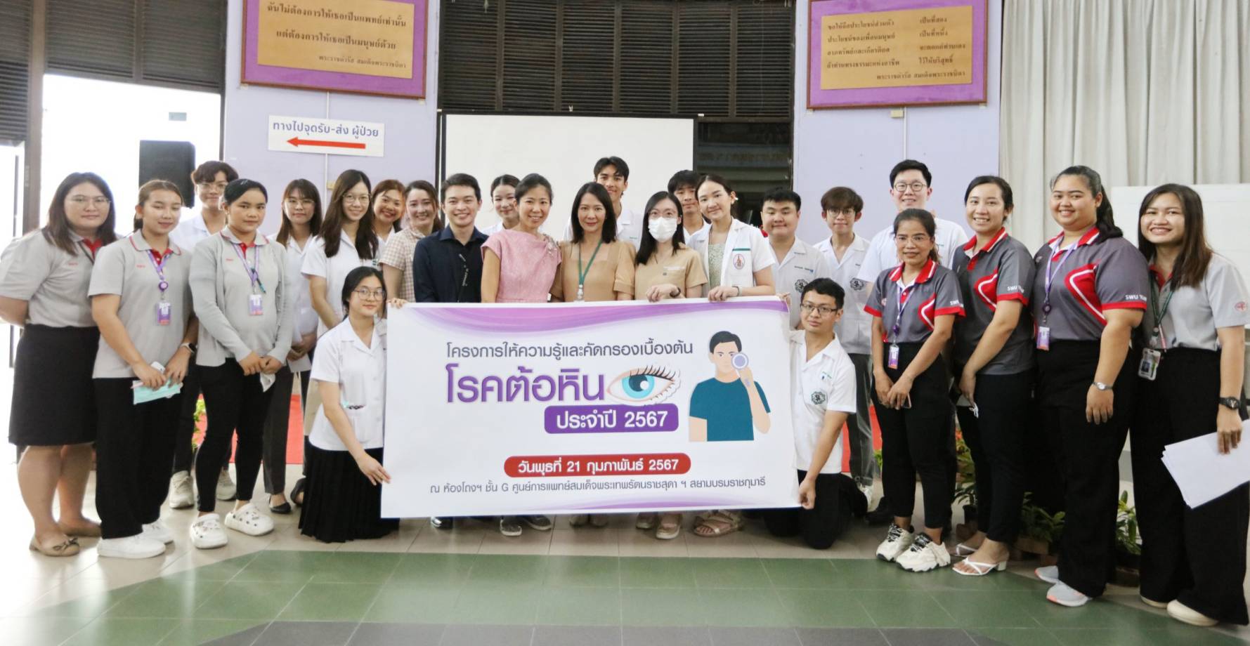 วันเดียวกันบริเวณห้องโถงชั้น G โรงพยาบาลศูนย์การแพทย์สมเด็จพระเทพฯ อ.องครักษ์ จ.นครนายก แผนกภาควิชาจักษุวิทยา คณะแพทยศาสตร์ มศว.จัดโครงการให้ความรู้และคัดกรองเบื้องต้นโรคต้อหิน ประจำปี 2567 ซึ่งภายในงานมีการบรรยายให้ความรู้ ฯ โดยแพทย์ผู้เชี่ยวชาญ มีกิจกรรมการตรวจพื้นฐานเบื้องต้นโรคต้อหิน พร้อมเล่นเกมส์และรับของรางวัลมากมาย.