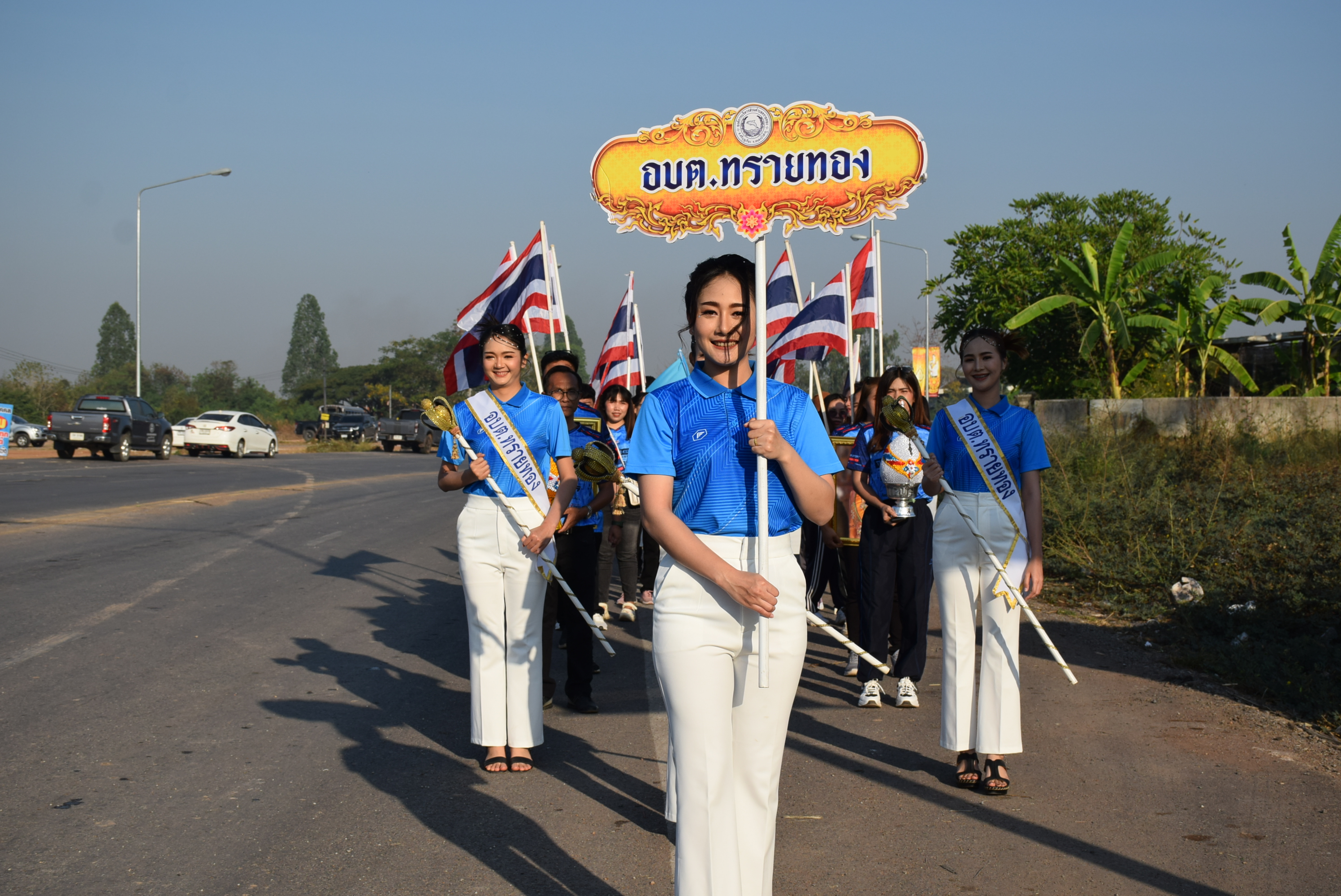 โดยก่อนที่จะถึงพิธีเปิดการแข่งขัน คณะกรรมการจัดการแข่งขันกำหนดให้ทีมกีฬาที่เข้าร่วมการแข่งขันเดินขบวนนักกีฬา และเจ้าหน้าที่ที่เกี่ยวข้องพร้อมกันที่ตลาดนัดคลองถมบ้านโป่งแจ้ง ต.หันนางาม อ.ศรีบุญเรือง โดยแต่ละขบวนจะมีการตกแต่งประดับประดารถ และขบวนแห่อย่างสวยงาม และคงสื่อให้เห็นอัตลักษณ์แต่ละท้องถิ่น ประกอบด้วยนักกีฬา ขบวนแฟนซีแต่ละ อปท.ที่คิดออกแบบโดยเน้นไปที่ความคิดสร้างสรรค์ การสร้างความตระหนักรู้เกี่ยวกับการป้องกันยาเสพติด การจำกัดขยะมูลฝอย การร่วมรณรงค์การปลูกพืชผักสวนครัว รวมถึงการส่งเสริมภูมิปัญญาท้องถิ่นของแต่ละชุมชน เดินไปตามถนนร่วมมิตรผ่านย่านศูนย์การค้า ระยะทางร่วม 1 กม.