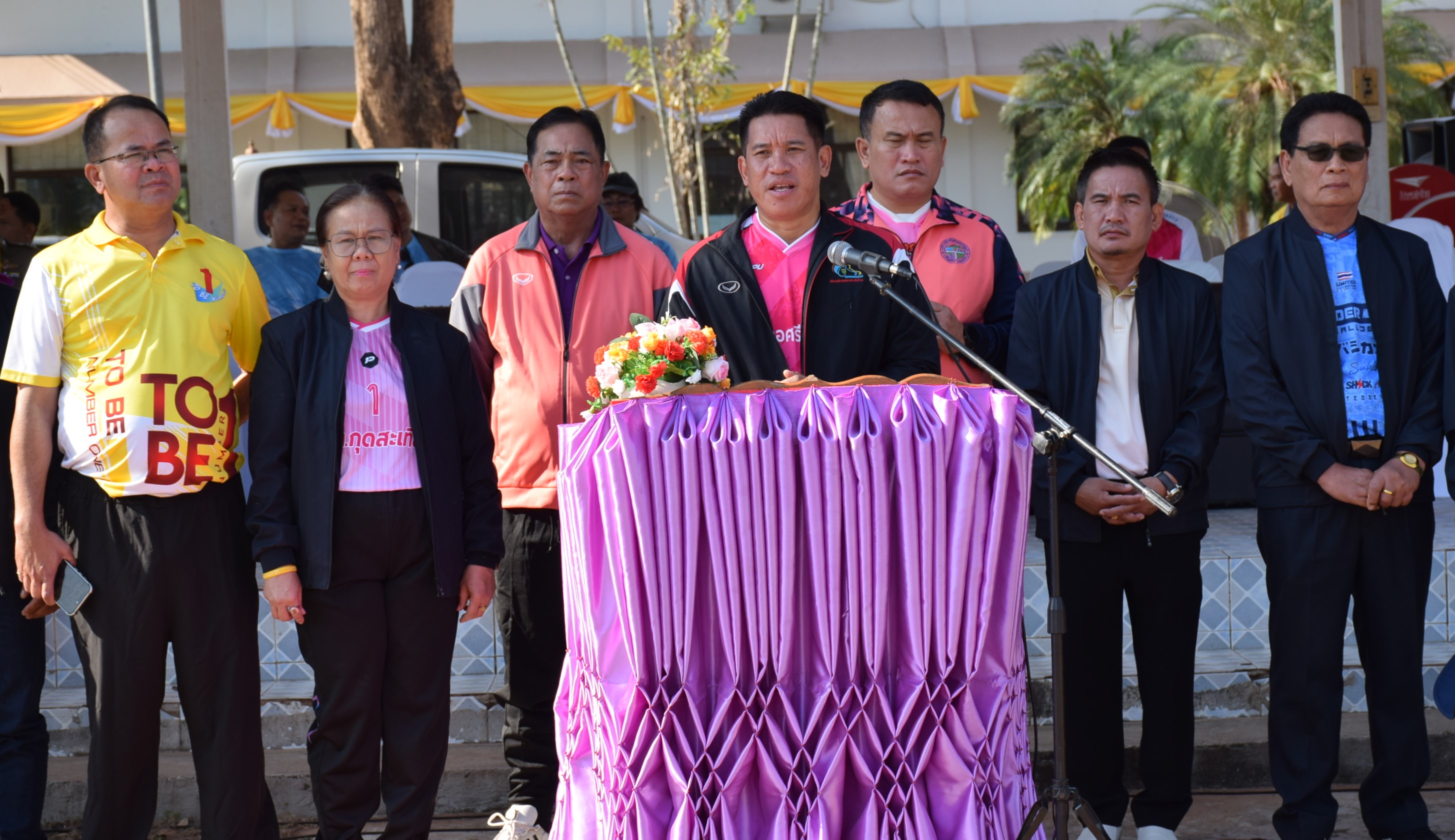 เมื่อทุกขบวนเดินเข้าไปภายในสนามหน้าที่ว่าการอำเภอศรีบุญเรืองเป็นที่เรียบร้อยแล้ว นายประยงค์ เอกตาแสง นายกเทศมนตรีตำบลหนองแก ในนามประธานคณะกรรมการจัดการแข่งขัน พร้อมคณะกรรมการจัดการแข่งขันได้กล่าวรายงานความเป็นมาต่อประธานในพิธี โดยนายประยงค์ กล่าวว่าการจัดการแข่งขันในครั้งนี้เป็นความร่วมมือกันระหว่าง องค์กรปกครองส่วนท้องถิ่นในอำเภอศรีบุญเรือง จำนวน 14 แห่ง ส่วนราชการอำเภอศรีบุญเรือง 1 ทีม และธนาคารเพื่อการเกษตรและสหกรณ์ การเกษตร สาขาศรีบุญเรือง และสาขายางหล่อ ขอเข้าร่วมการแข่งขันอีก 1 ทีม รวมเป็น 16 ทีม จัดการแข่งขันขึ้นระหว่างวันที่ 20 - 21 ก.พ. มีหัวหน้าส่วนราชการในอำเภอศรีบุญเรือง ผู้บริหารองค์กรปกครองส่วนท้องถิ่น ปลัดเทศบาลตำบล และ ปลัด อบต.ทุกแห่งร่วมเป็นเกียรติในพิธีเปิดในเวลา 09.15 น.และมีพิธีปิดภายหลังเสร็จสิ้นการแข่งขันในเวลา 17.00 น.ของวันเดียวกัน
