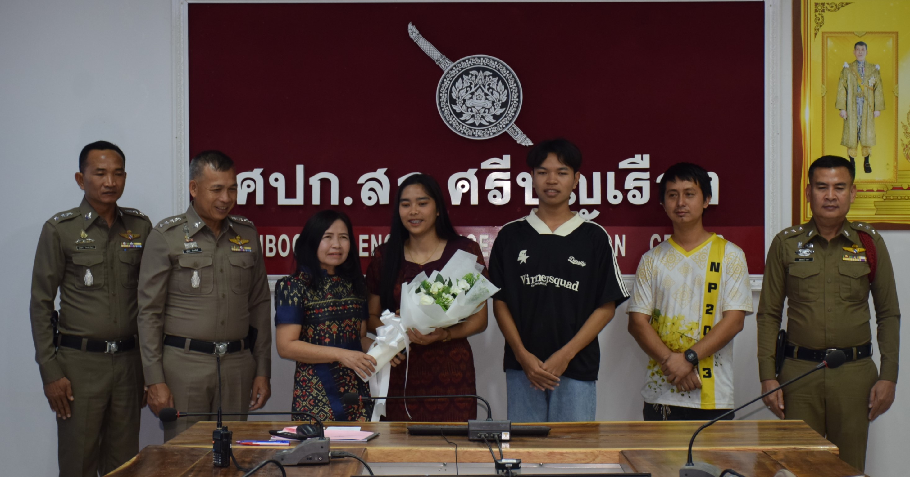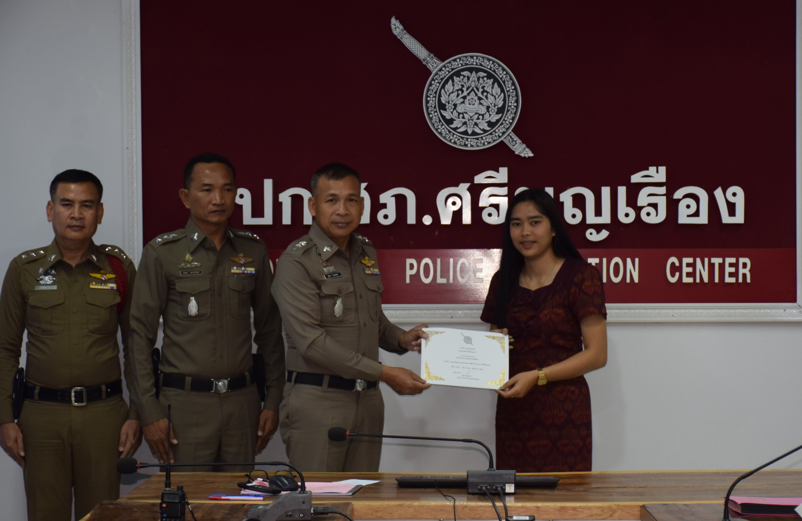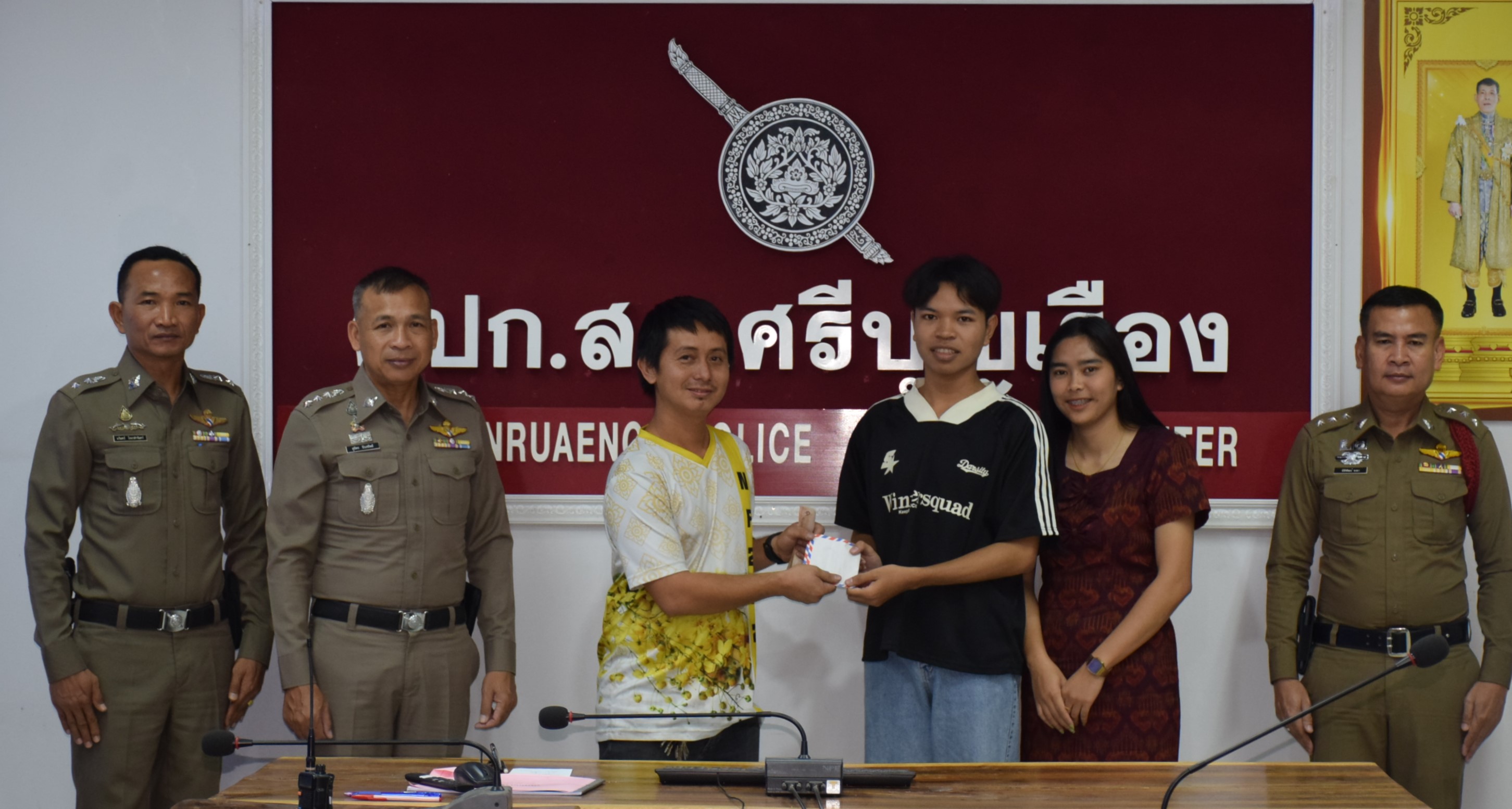 เมื่อเวลา 10.30 น.วันที่ 7 มี.ค.ที่ห้องประชุม ศ.ปก.สภ.ศรีบุญเรือง จ.หนองบัวลำภู พ.ต.อ.สุมิตร นันสถิตย์ ผกก.สภ.ศรีบุญเรือง พ.ต.ท.นรินทร์ โคตรคำจันทร์ รอง ผกก.ป.ฯ ร.ต.อ.นิติพัฒน์ จงดา ร้อยเวรสอบสวนฯ น.ส.กชกมล จันทรเสนา รักษาราชการแทนสรรพากรอำเภอศรีบุญเรือง ร่วมกันเป็นสักขีพยานการส่งมอบเงินสดจำนวน 11,000 บาทที่นายสุธนันท์ จักรโนวัน นักเรียนชั้น ม.5 โรงเรียนศรีบุญเรืองวิทยาคาร พร้อม น.ส.ปารินลดา หาแก้ว พี่สาว ทำงานอยู่สำนักงานสรรพกรอำเภอศรีบุญเรือง และนางหนูแดง อินทรเพชร ชาวศรีบุญเรืองที่ร่วมกันเก็บเงินจำนวนดังกล่าวตกอยู่กลางถนนนำส่งพนักงานสอบสวน เหตุเกิดช่วงเย็น วันที่ 1 มี.ค.ที่ผ่านมา
