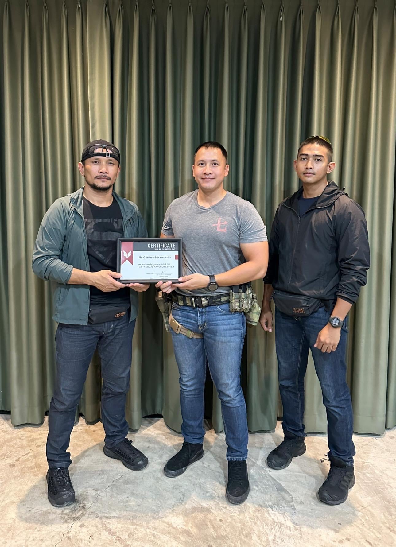 ทั้งนี้หลักสูตร Lv1 จะเน้นทฤษฎีเป็นหลัก เพื่อให้ผู้ที่เข้าอบรมมีความเข้าใจในเรื่องของการใช้อาวุธปืนอย่างไรให้ปลอดภัยกับตังเอง และคนรอบข้าง โดยหลังจบการอบรมได้มีการมอบประกาศนียบัตรให้กับผู้เข้าอบรมฯด้วย.