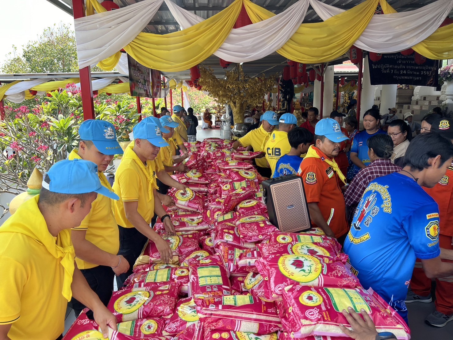 เมื่อเวลา 09.00 น.วันที่ 24 มี.ค.พ.ต.ต.โจ เสาร์ประโคน สว.ส.ทล.6 กกต.2 บก.ทล.(ทางหลวงกาญจน์-สุพรรณฯ) พร้อมเจ้าหน้าที่ตำรวจทางหลวง ส.ทล.6 กก.2 บก.ทล. จัดกิจกรรมจิตอาสา มอบข้าวสาร จำนวน 600 ถุงให้กับประชาชน ที่วัดเขาสูงแจ่มฟ้า ร่วมกับพระครูวินัยธรเกรียงไกร เจ้าอาวาสวัดเขาสูงแจ่มฟ้า เจ้าคณะตำบลเขาสามสิบหาบ ในโอกาสที่พระครูได้รับการแต่งตั้งเป็นพระอุปัชฌาย์ โดยมีพระเทพปริยัติโสภณ เจ้าคณะจังหวัดกาญจนบุรีเป็นประธานฝ่ายสงฆ์.