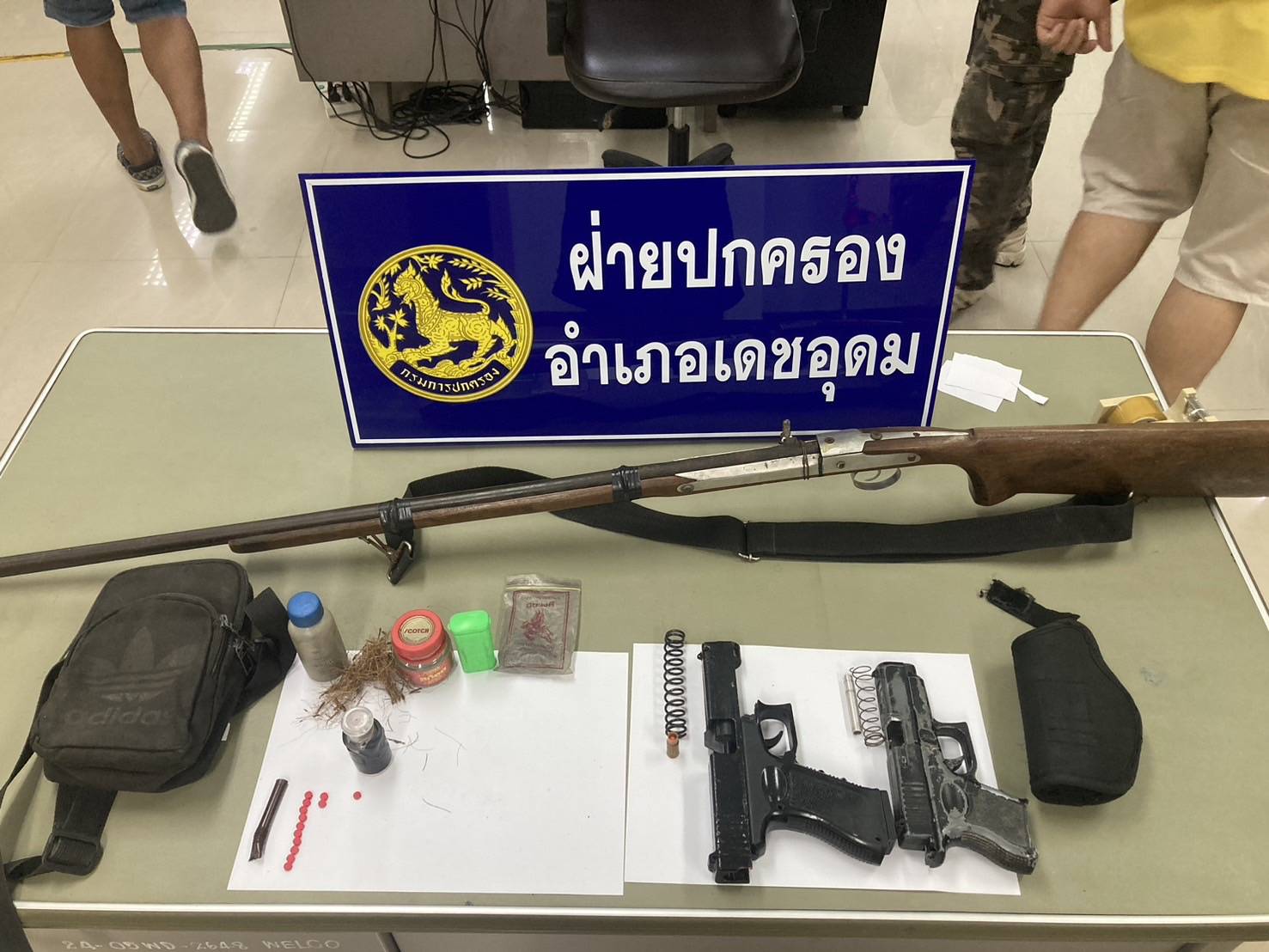 จับรายวันปืน-ยาเกลื่อนเมือง...ปกครองอำเภอเดชอุดมลุยจับตามที่ชาวบ้านร้องเรียน ผ่านศูนย์ดำรงธรรม บุกซิว 2 ผู้ต้องหาคาบ้านพักพร้อมของกลางยานรก-ปืน 3 กระบอก