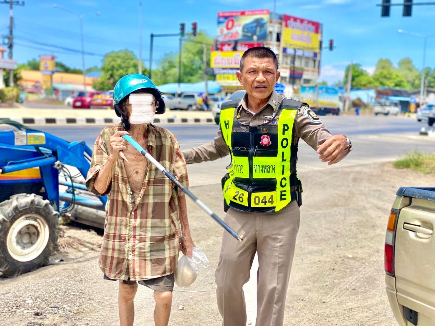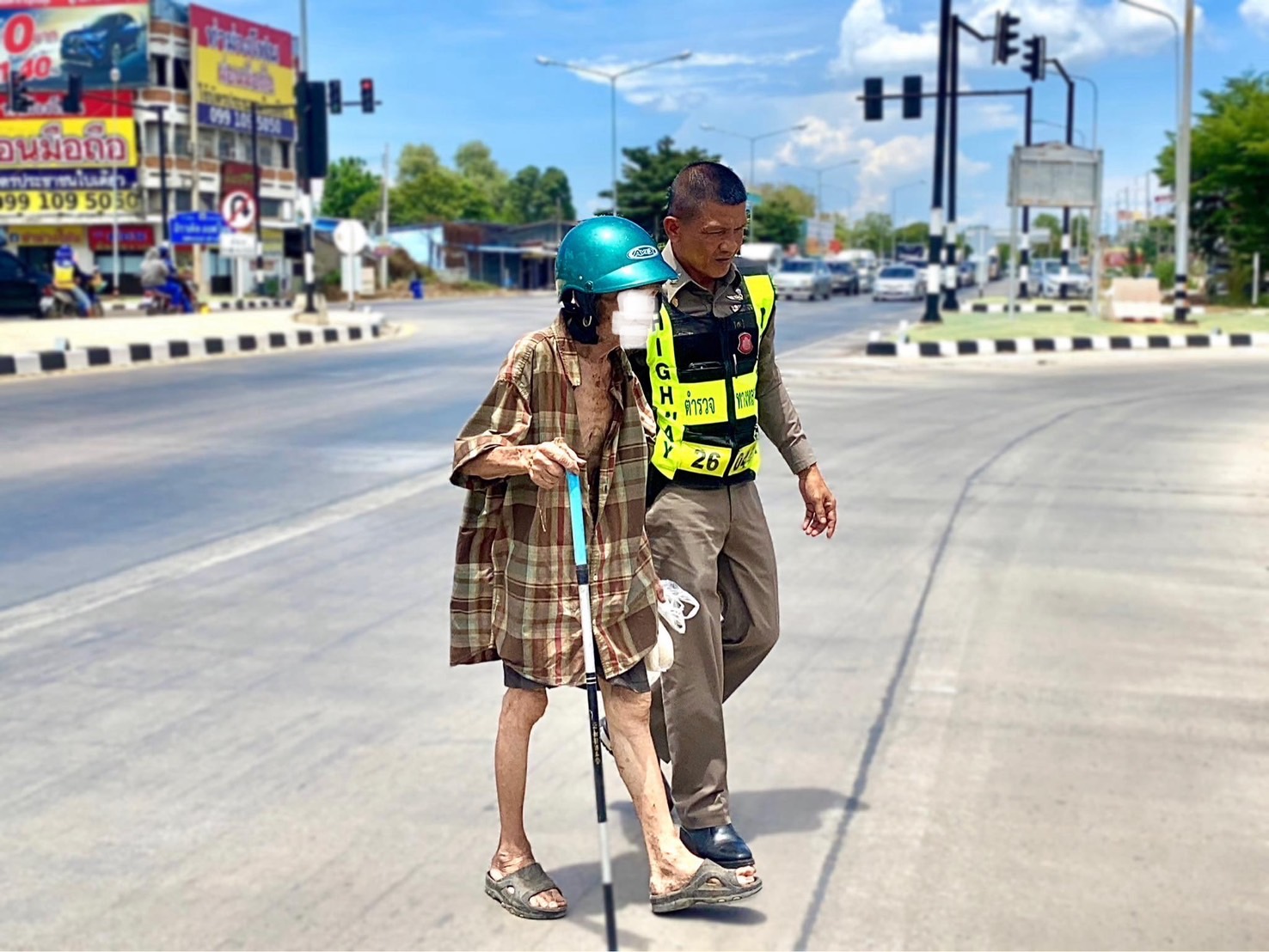 ภาพประทับใจ...ชายชราถือไม้เท้ากำลังจะข้ามถนน ตำรวจทางหลวงผ่านมาเห็นด้วยความห่วงใยอากาศร้อน-รถมากเกรงจะเกิดอุบัติเหตุ รีบจอดรถเข้าไปจูงมือคุณตาพาข้ามถนนพาส่งที่พัก ชาวบ้านเห็นพากันชื่นชม "ตร.ของประชาชน"